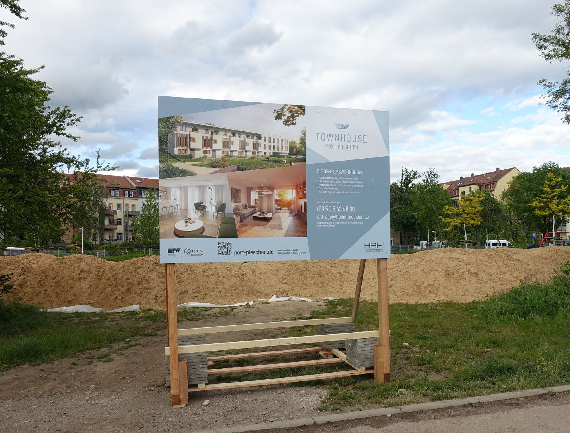 In den Pieschener Melodien wird ein weiteres Mehrfamilienhaus gebaut. Auf dem Baugrundstück am Hedwig-Langner-Weg, zwischen Spielplatz und Parkplatz, entsteht ein Mehrfamilienhaus mit elf Wohnungen. Der Bauherr, die Dresdner HBH Immobilien GmbH, hat dem Projekt den Namen Townhouse Port Pieschen gegeben. Geplant sind fünf Townhouses, drei Wohnungen und drei Penthouses mit einer Größe zwischen 95 und 141 Quadratmetern. Jede Wohnung verfügt über Garten, Terrasse oder Balkon. Das Dach wird begrünt.