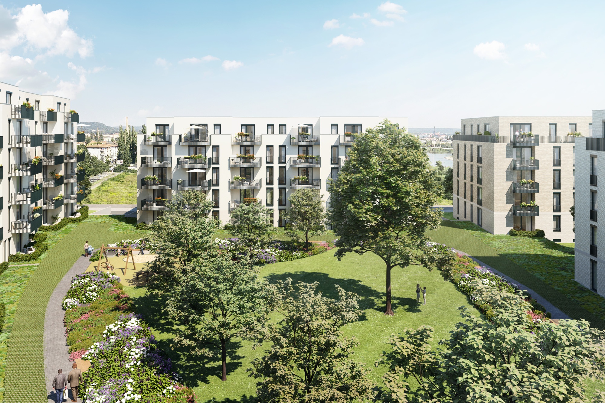 Seit einigen Wochen wird auf den städtischen Grundstücken, welche die einzelnen Bauabschnitte umschließen, die öffentliche Erschließung vorbereitet. Dazu gehört auch der Anschluss an das Fernwärmenetz der SachsenEnergie. Ein Haltestelle für Straßenbahnen 9 und 13 und die Buslinie 79 ist bereits vorhanden. Die „Brockwitzer Straße“ wurde im Februar 2022 eingeweiht. Der eigentliche Baubeginn für den ersten Bauabschnitt sei im zweiten Quartal geplant. Dann entstehen hier zunächst 190 Wohnungen und eine Gewerbeeinheit. Von den 150 Tiefgaragenstellplätzen sei ein Viertel für Elektrofahrzeuge vorgesehen. Die Wohnungen sollen im 3. Quartal 2024 bezugsfertig sein. Neben den 3- und 4-Zimmerwohnungen sind vier Wohnungen mit einem Zimmer und 55 mit zwei Zimmern geplant.
