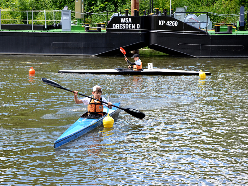 Das bewiesen rund 70 sächsische Kinder beim Sprintrennen und dem Geschicklichkeitsparcours im Hafenbecken an der Leipziger Straße. Zwei Mal paddelten die Acht- bis Zwölfjährigen knapp 200 Meter von der Molenbrücke ins Hafeninnere, ein Mal mussten sie den Parcours mit Drehung und Rückwärtsfahrstrecke bewältigen. Dazu noch der Wind im Hafenbecken, ergänzt Steffen Illig, Abteilungsleiter Kanu beim Wettkampfveranstalter TSV Rotation. „Der macht es für manche Kinder schwierig, sich am Start gerade hinzustellen.“