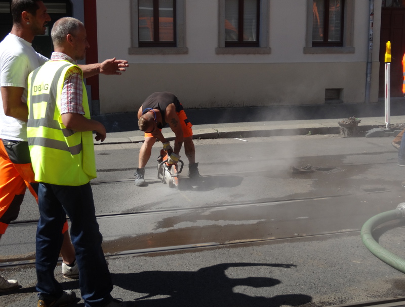 Klar sei, dass für die Reparaturarbeiten die Gleise aus ihrem Bett gehoben werden müssen. Die Arbeiter haben bereits damit begonnen, den Asphalt zwischen den Gleisen aufzufräsen.
