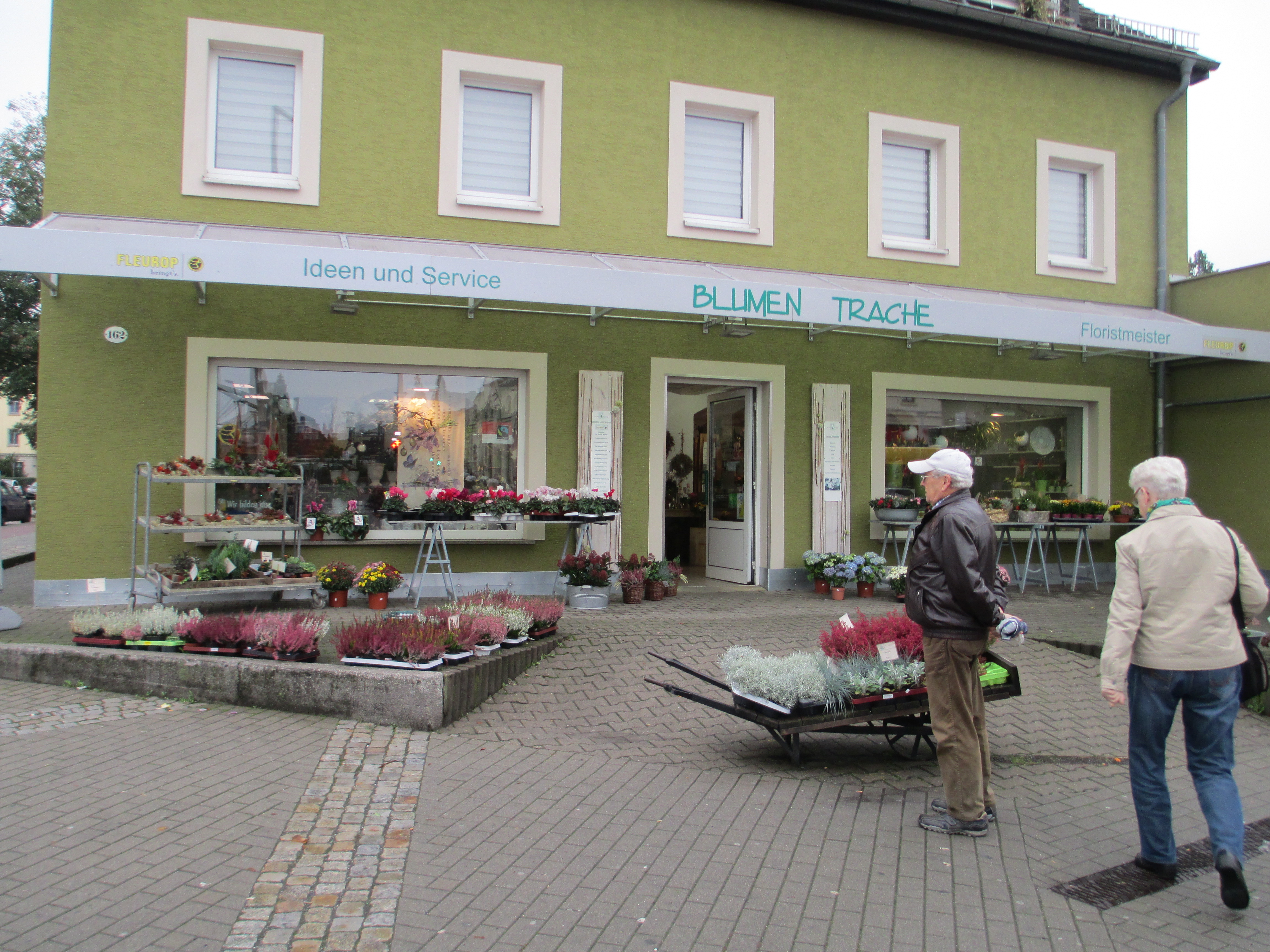 Während sich der Himmel über Pieschen in feinster Herbstmanier asphaltgrau dekoriert hat, blüht vor dem Floristikgeschäft Trache tapfer ein Teppich aus Erika. Daneben reckt der Zierkohl seine Köpfchen. Drinnen lässt dem Geruch nach der Frühling sein blaues Band flattern. Einen Wechsel erfuhr das Traditionsgeschäft heuer nicht nur in Bezug auf die Jahreszeiten.