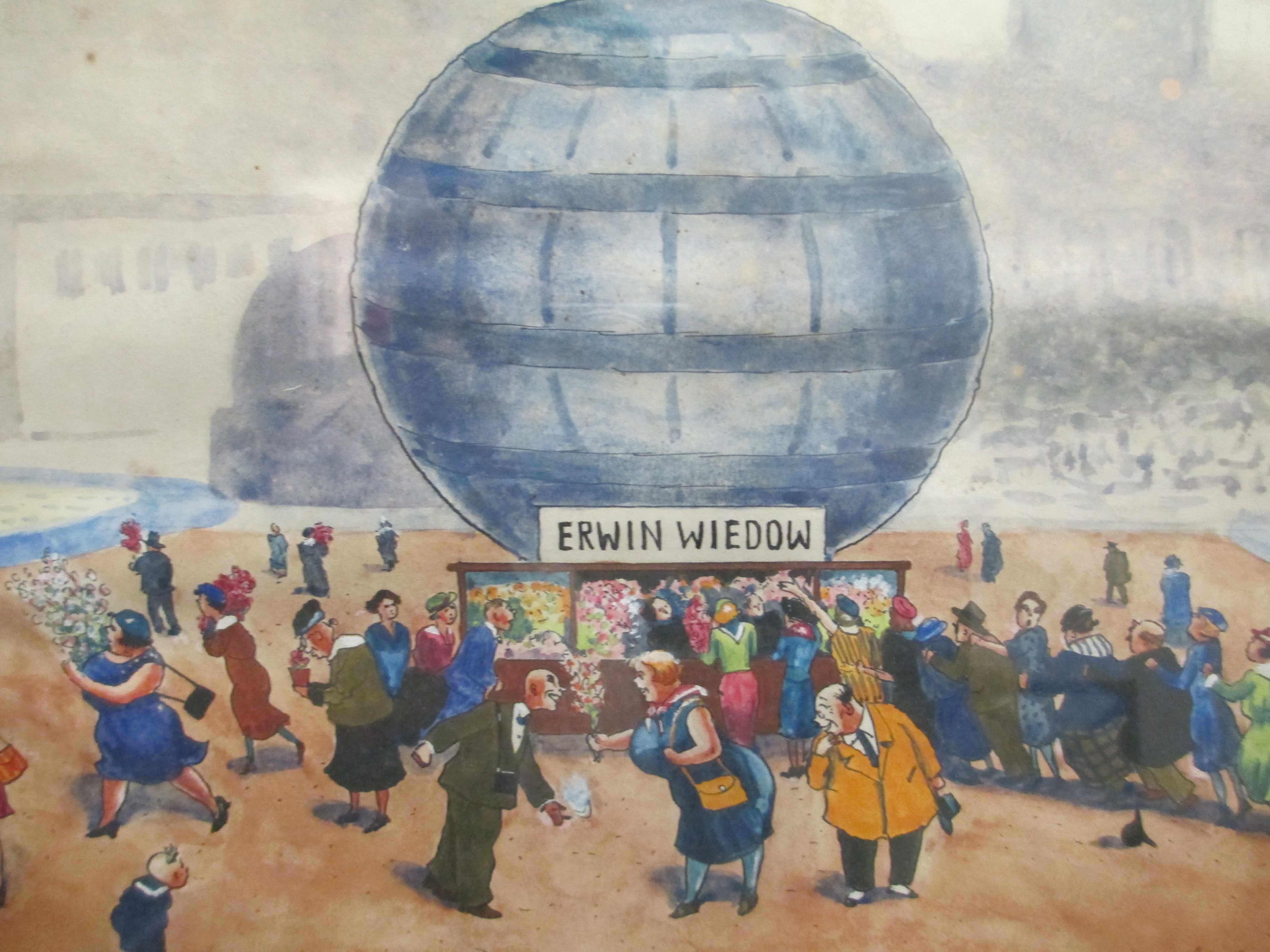 Erwin Wiedow malte ein Bild seines kleinen Geschäfts unter dem Kugelhaus am Straßburger Platz