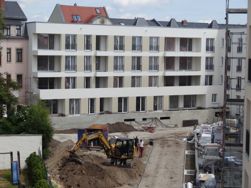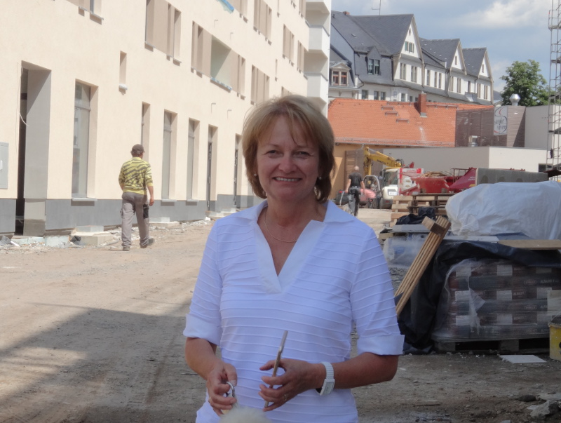 Ab 27. September können die ersten Mieter in die neuen Wohnungen einziehen. Für den Umzug würden einige mietfreie Tage eingeräumt. Mietbeginn sei zum Ersten des Monats. Alle Wohnungen sind barrierefrei erreichbar. Mit Ausnahme von zwei kleinen Wohnungen würden alle über einen kleinen Abstellraum, eine Gästetoilette, Badewanne und Dusche verfügen. Die Kaltmiete bewege sich zwischen 8,60 bis etwa 10,50 Euro, die Nebenkosten zwischen 2,20 und 2,40 Euro pro Quadratmeter. „Von den 26 Wohnungen im ersten Bauabschnitt entlang der Bürgerstraße sind noch zwei frei“, berichtete heute Christiane Fiebiger, die sich um die Vermietung kümmert.