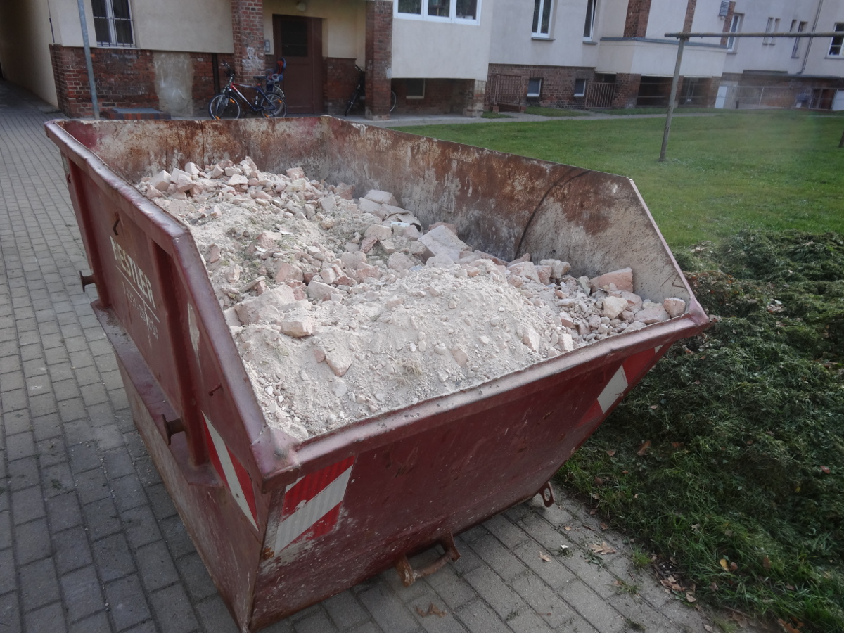 Einen Container voll Schutt haben die Hausmeister aus der zerstörten Wohnung bereits beräumt. Foto: W. Schenk