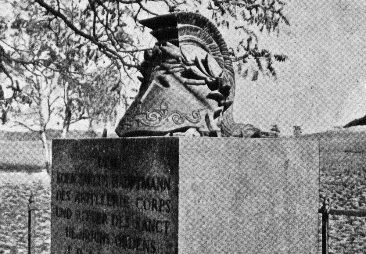 Da der antike Helm nicht mehr auffindbar war, gab 1976 die Dreikönigskirchgemeinde einen ähnlichen vom aufgekündigten Grabmal des Oberleutnants im königlich- sächsischen Generalstab Horst Robert Steiger (1830-1863) kostenlos ab. In den 1990er Jahren wurde eben dieser Helm samt Steinplatte vom Gedenkstein „zu Boden gestoßen“, von Tankstellen-Mitarbeitern sichergestellt und dem Denkmalschutzamt übergeben. Seitdem wird er im Lapidarium der Stadt Dresden aufbewahrt.