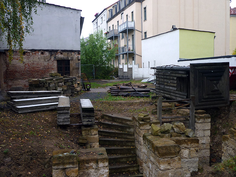 Das Grundstück Markusstraße 13 erwarb der Stoffwechsel-Verein vor etwa sechs Jahren, um sein Gelände zu erweitern. Zu diesem Zeitpunkt befand sich auf der Fläche noch ein Garagenhof aus DDR-Zeiten inklusive jenes zweistöckigen Gebäudes. Darin hatte wohl noch lange Jahre eine alte Frau gewohnt, doch zuletzt war das Haus nur noch als Auto-Unterstellmöglichkeit genutzt worden. Zum Jahreswechsel 1980/81 vermeldete die Sächsische Zeitung einen Brand auf dem Gelände – die Rußschicht war beim Abriss noch immer vorhanden.