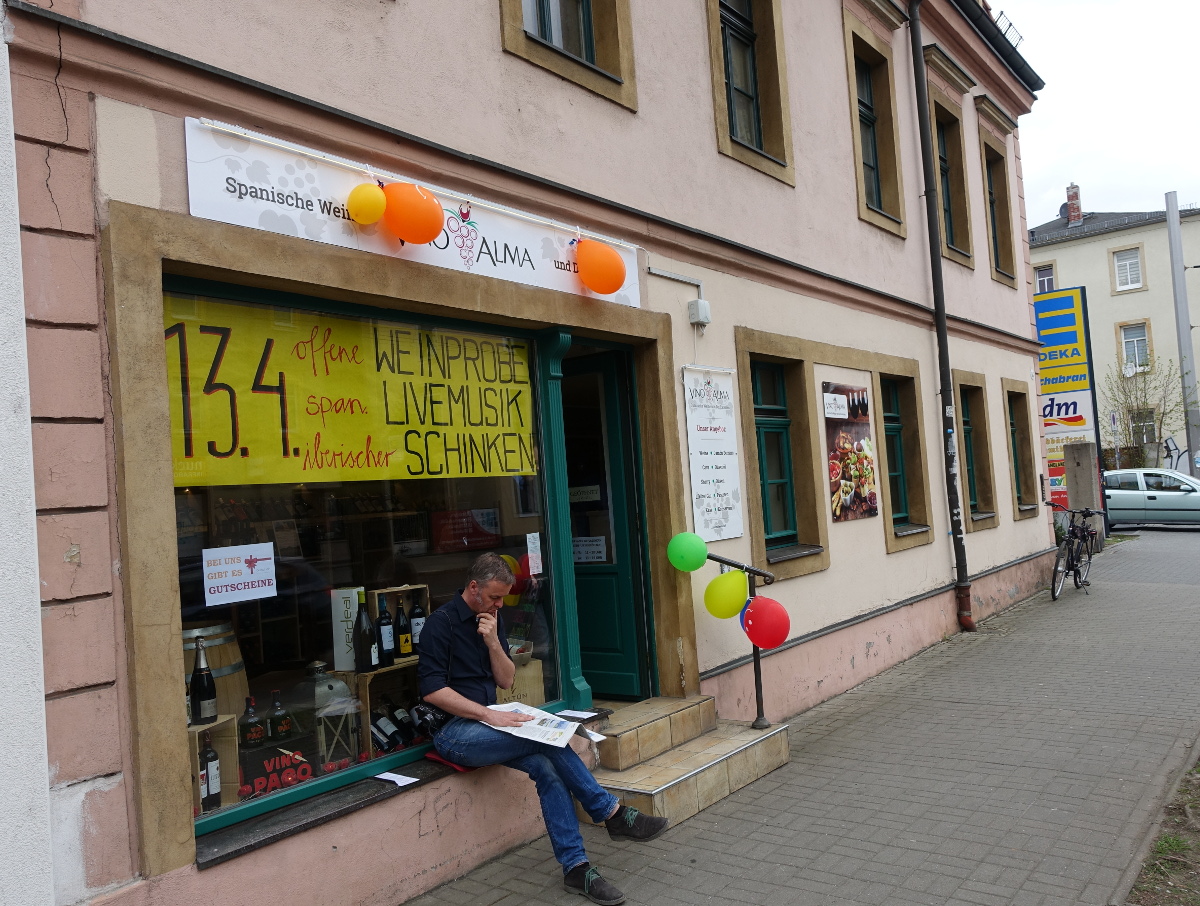 Ein neues Geschäft für spanische Weine und Delikatessen hat am Freitag auf der Großenhainer Straße seine Eröffnung gefeiert. Vor vier Monaten hat Geschäftsführer Martin Müller sein Vino & Alma dort eröffnet. „In der nächsten Woche sollen Webseite und Onlineshop starten. Das war für uns ein schöner Anlass, jetzt mit unseren Kunden zu feiern“, sagte er. Hinter dem studierten Forstwissenschaftler und Weinliebhaber, der in Trachau groß geworden ist, stehen viele Familienmitglieder, die helfen.