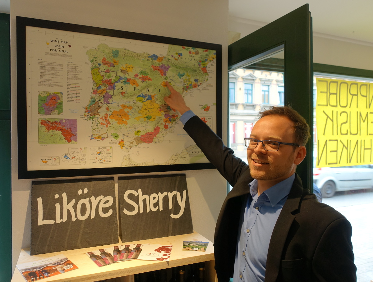 Die Kunden könnten auch einfach nur auf ein Glas Wein vorbeischauen, plaudern, die neuen Angebote studieren, sich beraten lassen oder den typischen spanischen Schinken testen. Er selbst sei Liebhaber der Weine aus den Anbaugebieten Jumilla und Bullas in der Region Murcia. „Die Winzer dort machen moderne Weine, nicht so schwer, eher fruchtig“, erklärt er. Gern überzeugt er seine Kunden auch davon, dass die Spanier auch gute Weißweine herstellen. Immerhin würden die entsprechenden Trauben auf etwa der Hälfte der gesamte Anbaufläche wachsen.