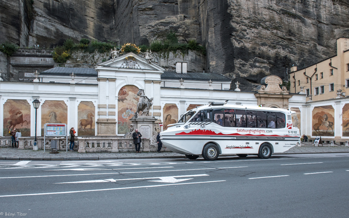 Seit dem Herbst 2016 ist der Amphibienbus für Stadtrundfahrten in Salzburg unterwegs. Vier Jahre habe man an dem österreichweit einzigen Amphibienbus entwickelt, sagte Monica Bönsch vom Veranstalter „Salzburg Highlights“. Für das Fahrzeug sei „Leichtbaumaterial wie Kohlefaser zum Einsatz gekommen, drei Antriebe auf engsten Raum installiert und ein exklusives Design entwickelt worden“, so Bönsch. Das Fahrzeug wiege 7,6 Tonnen und biete Platz für 26 Personen. Die „Amphibious Splash Tours“ hätten sich schnell zu einem begehrten Sightseeing-Angebot entwickelt.