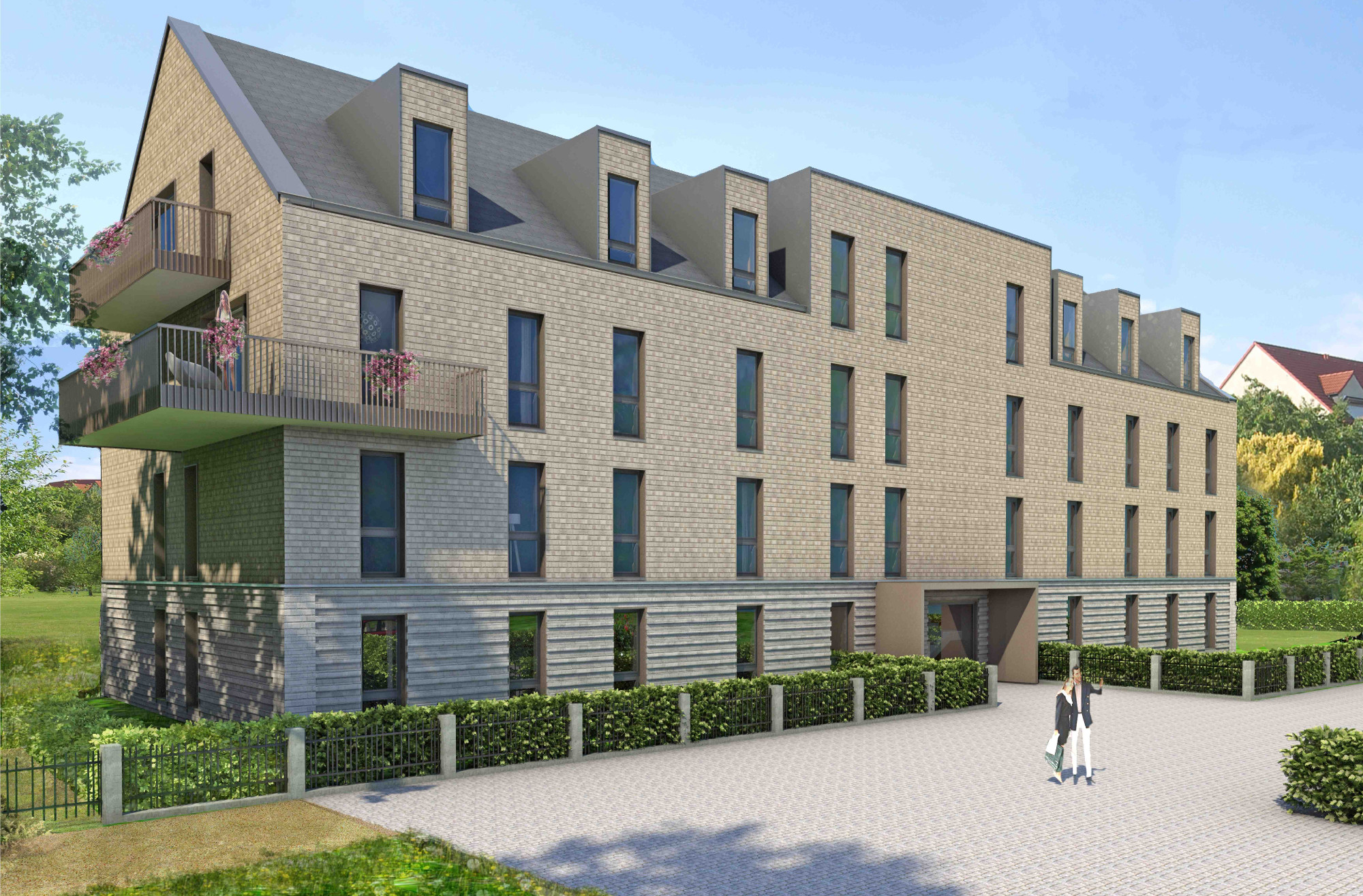 Ein modernes Stadthaus aus Massivholz wird an der Großenhainer Straße gebaut. Auf dem knapp 3.000 Quadratmeter großen Grundstück hinter der Nummer 139 sind in der zweiten Reihe 13 Zwei- bis Fünfraumwohnungen zwischen 60 und 150 Quadratmetern geplant. „Die ersten drei Wohnungen sind bereits verkauft, für drei weitere haben wir Reservierungen“, erzählt Annett Golembus, die sich für den Bauherren, die Firma Holzpalais aus Limburgerhof (Rheinland-Pfalz), vor Ort in Dresden um das Marketing kümmert.