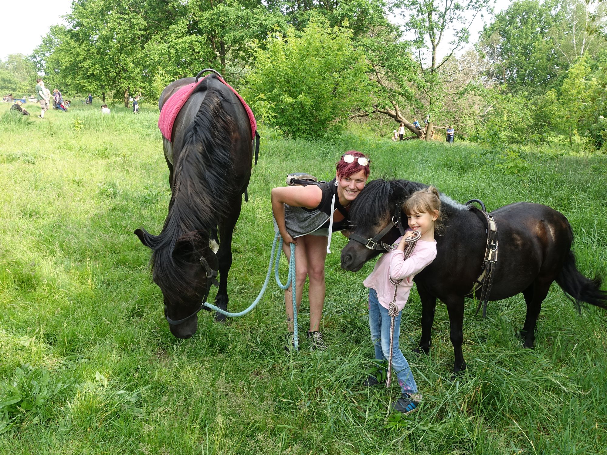 Die Pferde von Linda Stüwe aus Kaditz haben schon vor dem Fest eine Woche lang auf der Wiese gearbeitet, oder besser, gefressen. Am Sonnabend waren sie dann beim Kinderreiten besonders gefragt. Die Schlange war fast so lang, wie am Eissstand. Geduld war gefragt. Tochter Amy kümmerte sich um das Pony. „Für den Winter suchen wir noch einen festen Stellplatz für unsere Tiere“, sagte die Pferdebesitzerin und hofft auf ein Quartier in Kaditz oder Umgebung.