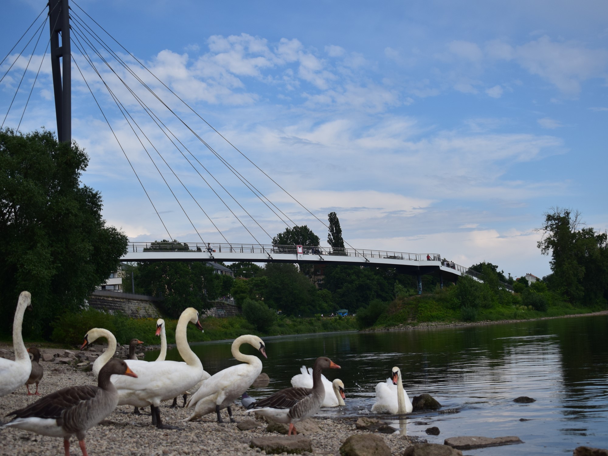 Geht man von der Konkordienstraße aus weiter, kommt man schnell an die Elbe. Am Ufer konnte ich viele Schwäne und Gänse sehen.