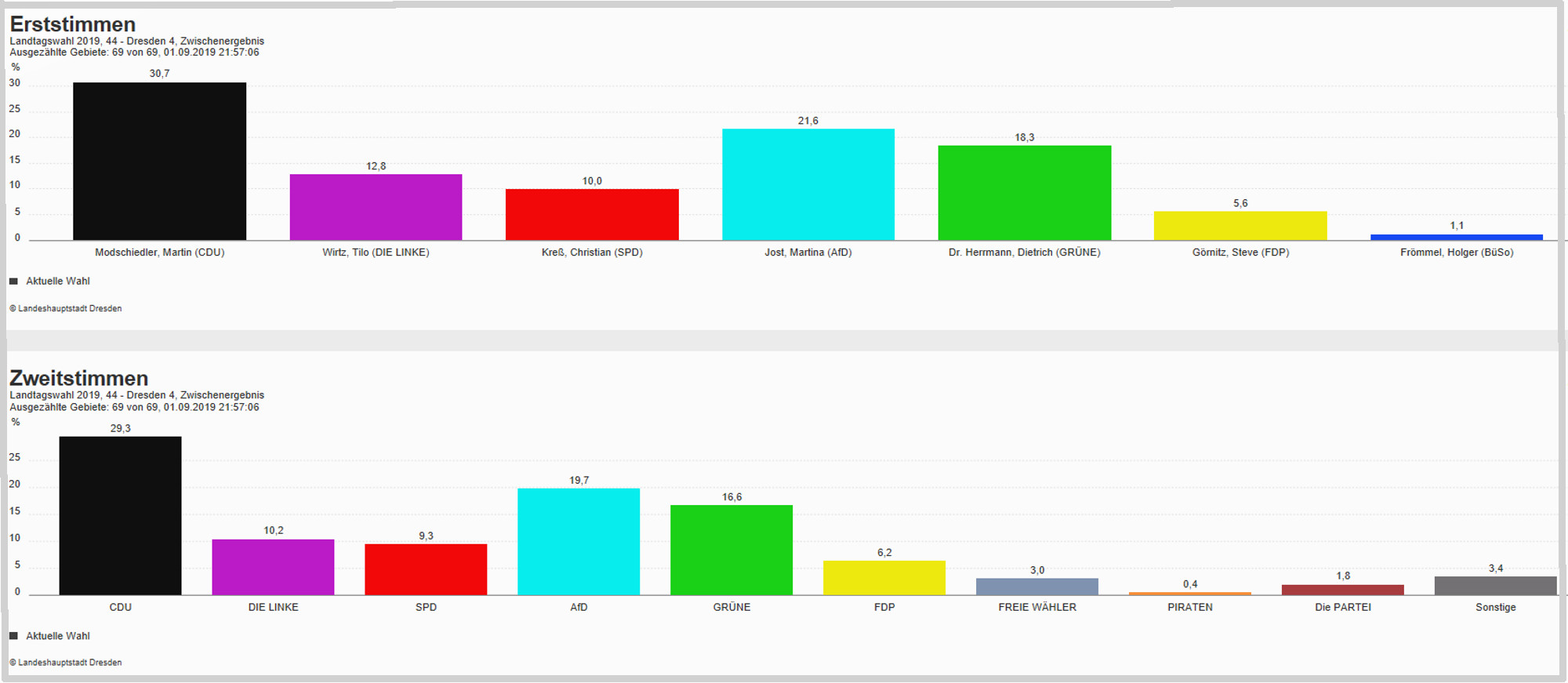 Landtagswahl 2019: Ergebnisse im Wahlkreis 44, Dresden 4. Quelle: Landeshauptstadt Dresden