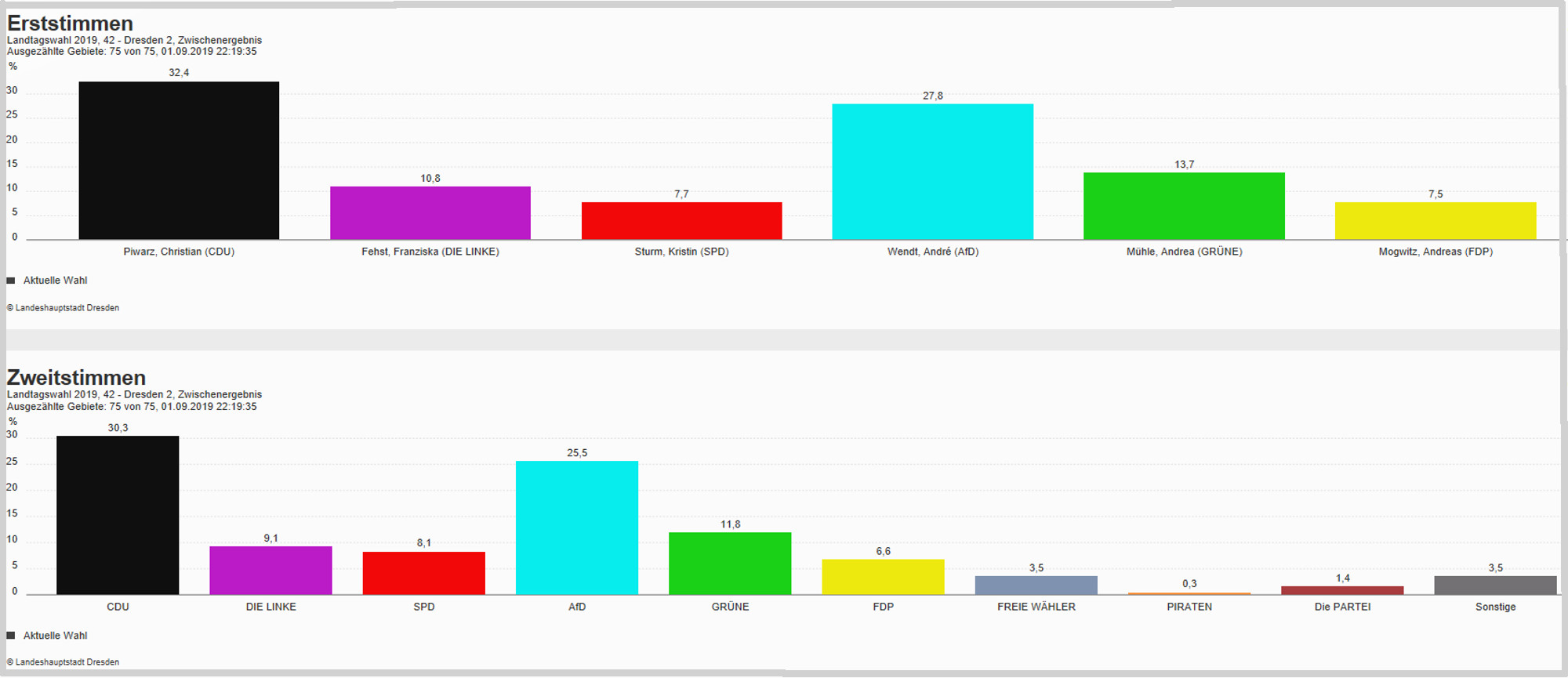 Landtagswahl 2019: Ergebnisse im Wahlkreis 42, Dresden 2. Quelle: Landeshauptstadt Dresden