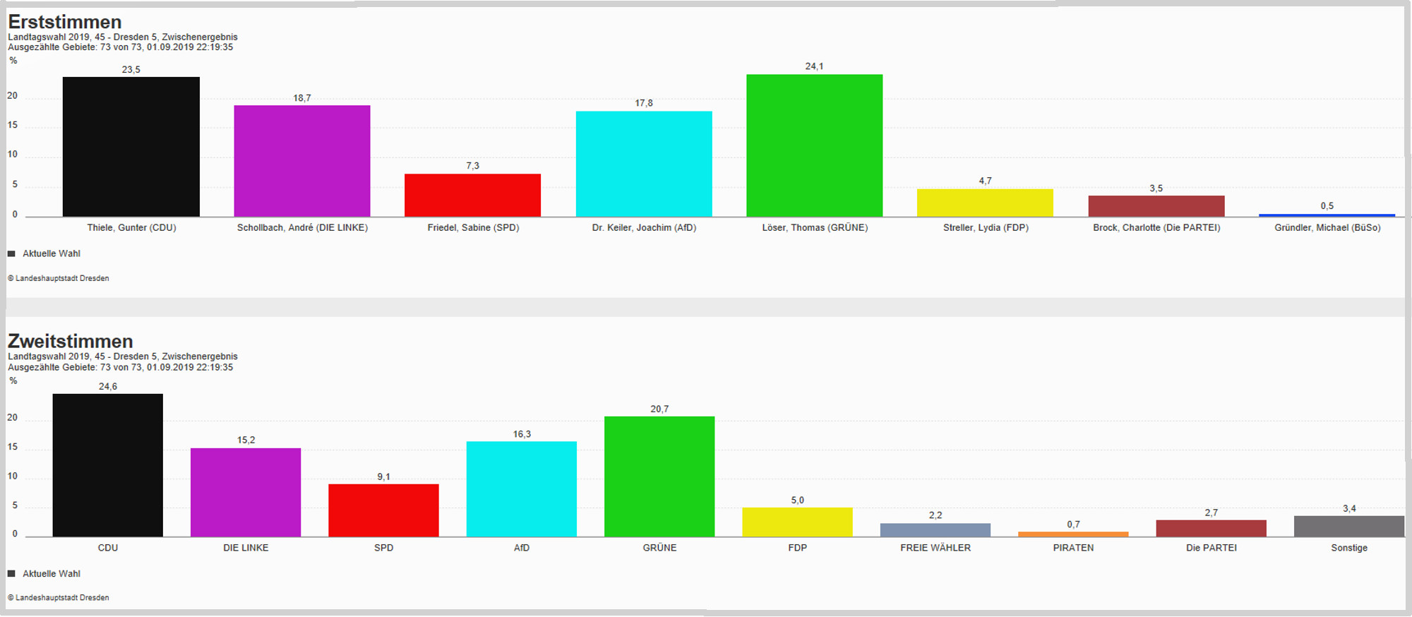 Landtagswahl 2019: Ergebnisse im Wahlkreis 45, Dresden 5. Quelle: Landeshauptstadt Dresden