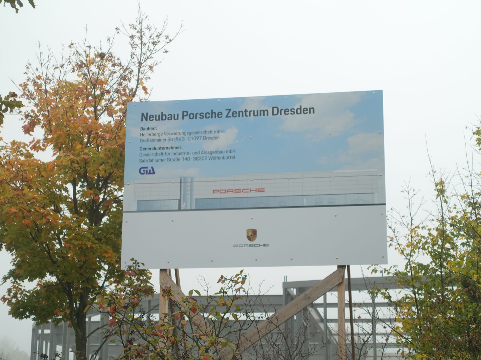 Das Porsche Zentrum Dresden wird seinen Standort von der Großenhainer Straße in die Meinholdstraße verlegen. Auf dem Grundstück gegenüber der Druckerei Prinovis Dresden verkündet ein Bauschild die Entstehung eines neuen und größeren Autohauses. Einen genauen Umzugstermin nennt das Unternehmen noch nicht. Sicher ist dagegen bereits, was am jetzigen Standort des Autohauses an der Großenhainer Straße 3 geplant ist. Und zwar bis Ende 2022.