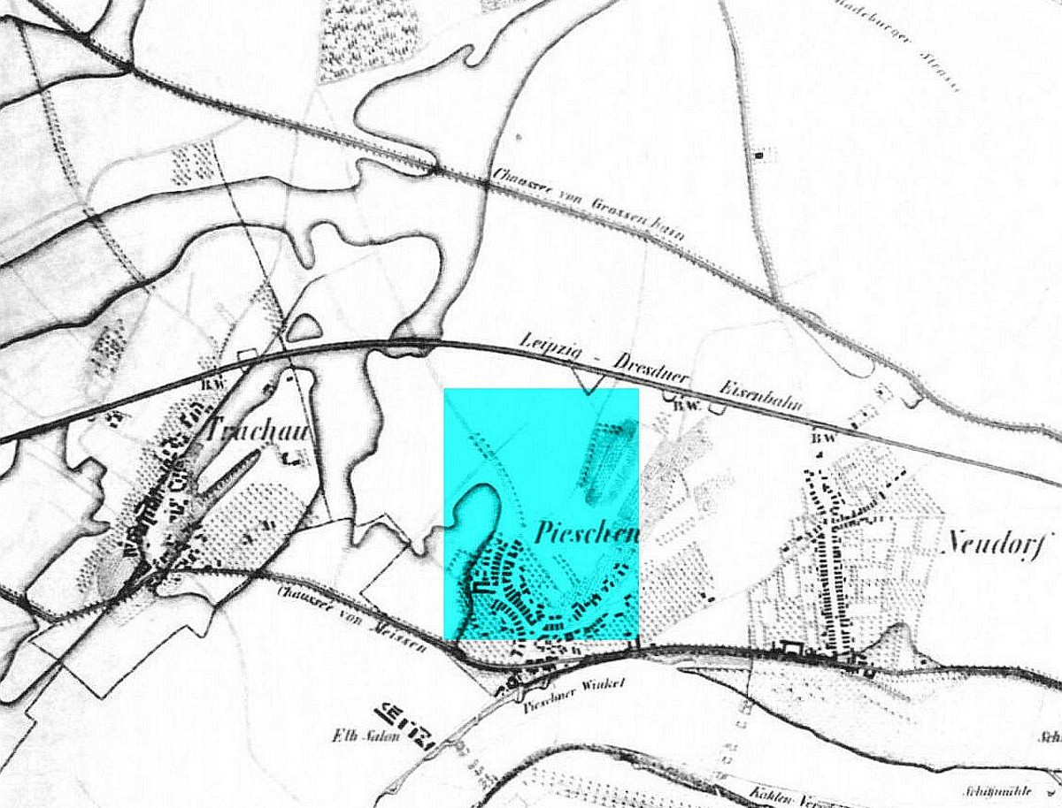 Das war auch im 1897 nach Dresden eingemeindeten Pieschen nicht anders. So ist die heutige Arno-Lade-Straße ursprünglich ein Teil der Begrenzung des Dorfes. „Früher genannt der freie Dorffrieden umbs Dorf herumb, drei Ellen breit.“, wie Heidemarie und Heinz Glodschei in „Die Geschichte des Dresdner Vorortes Pieschen“ (2008) schreiben.