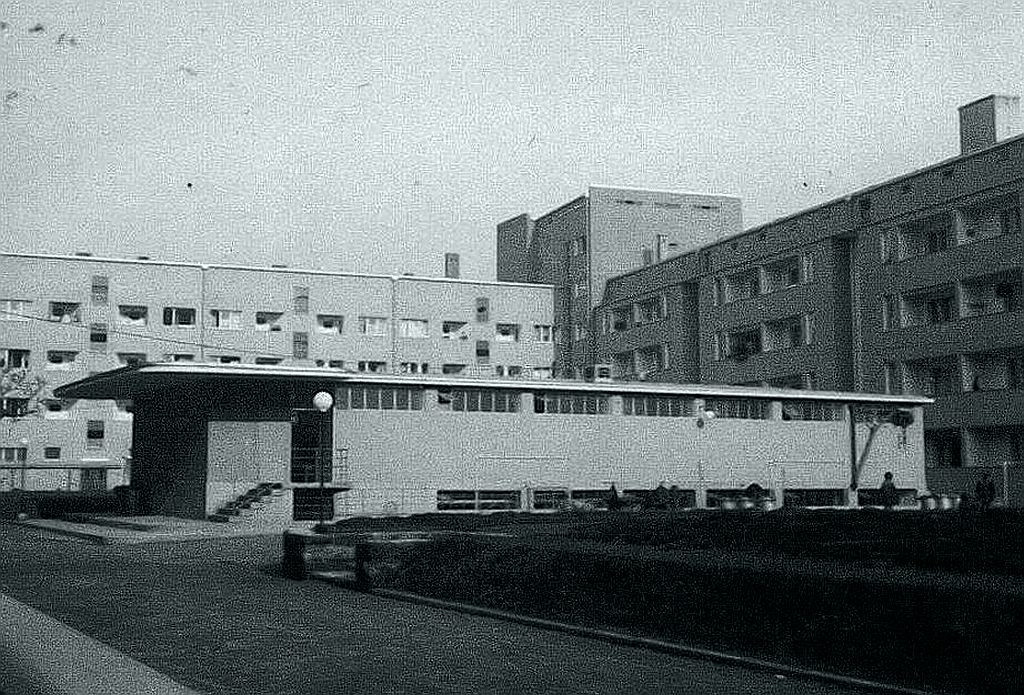 Innenhof der1927/28 durch die GEWOBAG errichteten Wohnanlage mit Fernheizwerk und Zentralwäscherei. Foto: Archiv K. Brendler (1935)