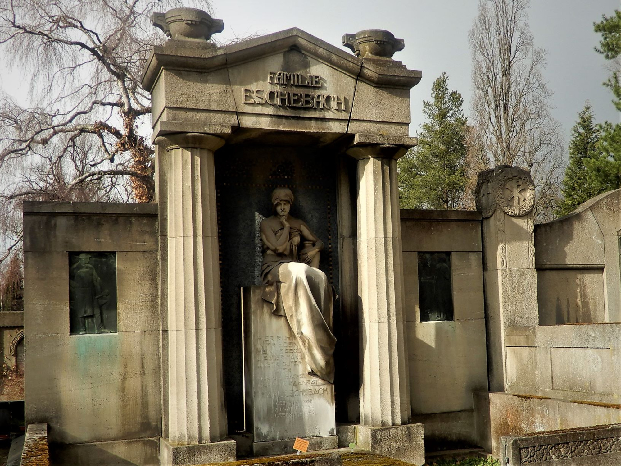Carl Eschebach, um 1900 einer der vermögendsten Männer Dresdens, starb am 8. Februar 1905 während eines Erholungsaufenthalts in Monte Carlo/Monaco. Seine letzte Ruhestätte befindet sich auf dem Johannisfriedhof in Dresden-Tolkewitz.