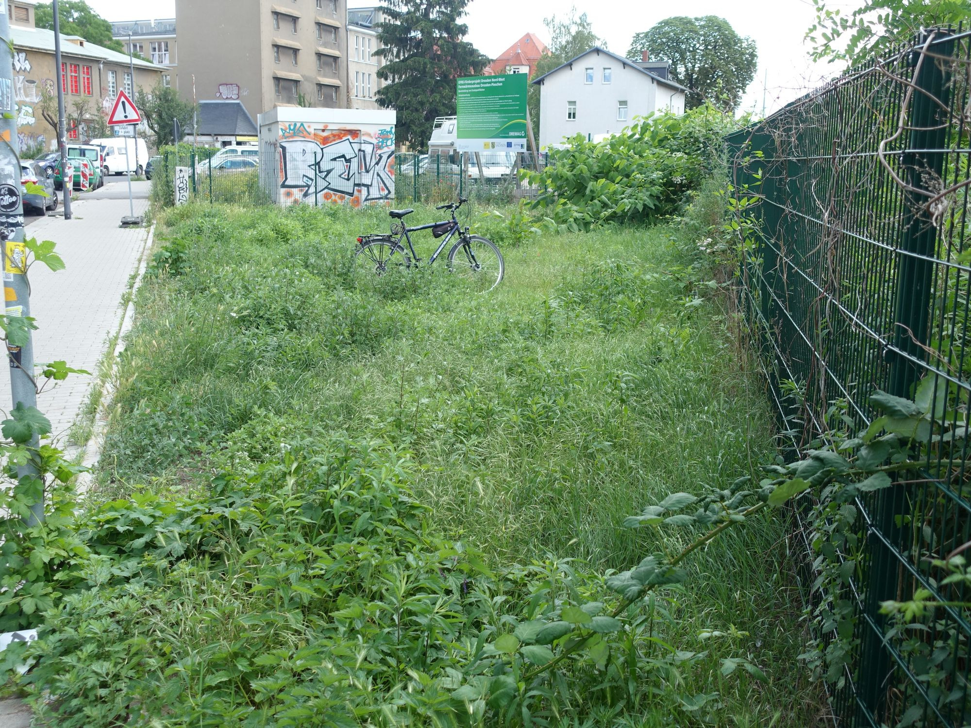 Zwei mal die Note 6. Abstellanlagen gesamt – gleich Null, davon fahrradfreundlich – gleich Null, davon mit Dach – gleich Null: Trotz anderweitiger Ankündigungen müssen die Radfahrer ihre Räder an den Haltepunkten Pieschen und Trachau bis heute wild parken. Für Besitzer von teuren Rädern und e-Bikes kommt eine Kombination von Rad und Bahn darum überhaupt nicht in Frage. Dabei wollte die Bahn die bereits für 2019 geplanten Abstellanlage für Fahrräder am Haltepunkt Pieschen in diesem Jahr realisieren. Bisher wächst auf der dafür vorgesehenen Fläche jedoch immer noch Grünzeug.