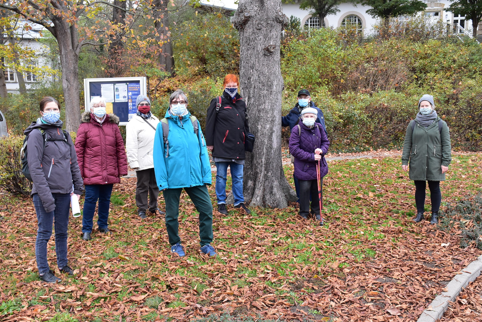 Es ist recht frisch an diesem etwas grauen Mittwoch im November. Dennoch kommen vier Seniorinnen und ein Senior des DRK-Seniorenzentrums Impuls zum Treffpunkt an der Endhaltestelle „Wilder Mann“. Sie sind Mitglieder der Arbeitsgruppe „Geh-sundheitspfad“, die sich seit Anfang dieses Jahres einmal im Monat trifft, um ihre Ideen und Wünsche für einen Geh-sundheitspfad in Trachau und Trachenberge einzubringen. „Die Freude seitens der Mitarbeiterinnen, Besucherinnen und Besucher des Seniorenzentrums war groß, als die Rückmeldung kam, dass die Angebote nicht unter die Einschränkungen der aktuellen Corona-Schutz-Verordnung fallen“, sagt Sozialarbeiterin Adrienne Höfgen. Unter den aktuellen Bedingungen war das Treffen mitten im Teil-Lockdown im November nicht selbstverständlich. Das Tragen einer Mund-Nase-Bedeckung und das Achten auf Abstand gehörten daher dazu.