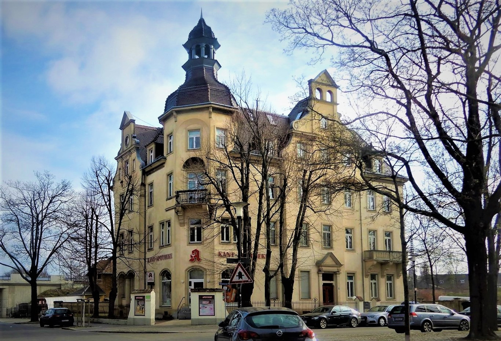 In der zweiten Hälfte der 1930er Jahre ist ein Großteil der sogenannten Hans-Richter-Siedlung (heute Wohnungsgenossenschaft Trachau Nord) fertiggestellt. Die Bevölkerungszahl in diesem Trachauer Neubaugebiet wuchs ständig. Außerdem standen seit 1928 schon sechs der späteren acht Wohnpavillons des Güntz-Altenheims. Mag sein, dass diese Umstände eine Apotheke erforderlich machten, es mögen auch andere Gründe vorgelegen haben. Tatsache ist, im Laufe des Jahres 1936 eröffnete der Apotheker Ernst Franz von Janczewski in den ehemaligen Gasträumen des „Restaurant Bahnhof Trachau“ die „Kant- Apotheke“.