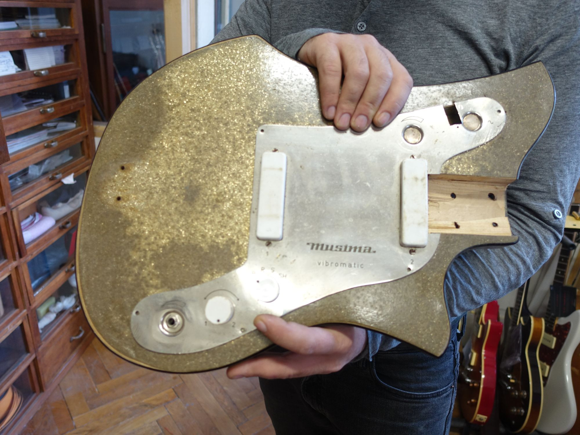„Ich bin im Bereich der E-Gitarren einer der wenigen, die wirklich Gitarrenbauer gelernt haben“, verweist er neben seinem restauratorischen Blick auf ein weiteres Alleinstellungsmerkmal seiner Werkstatt. Auch bei diesen Instrumenten spiele das Holz eine wichtige Rolle. „Künstlich getrocknet – das geht gar nicht, weil das Holz nicht ordentlich schwingt“, ist er überzeugt. 2017, da war Jan Steinbrecher gerade mal vier Jahre selbständig mit seiner Werkstatt, hatten ihn alle einschlägigen Fachjournale entdeckt und über ihn berichtet. Die Belegexemplare liegen unter der Glasplatte des Couchtisches, der vor dem alten Sofa in der Werkstatt steht.