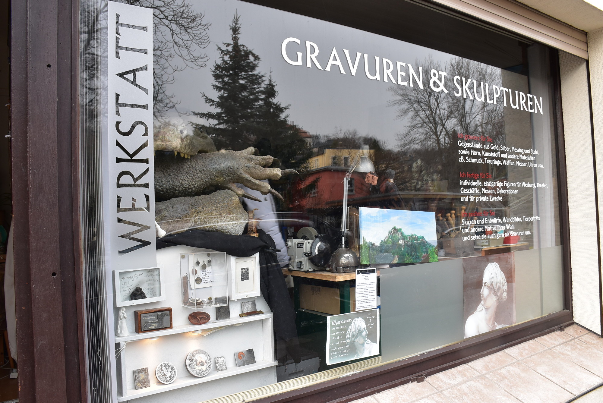 Trotz Umschulung möchte sie ihre Werkstatt nicht aufgeben. Insbesondere die Workshops und kreative Geburtstagsfeiern mit Kindern möchte sie wieder anbieten, sobald es die Corona-Situation zulässt. Aufträge für Gravuren zum Beispiel auf Schmuck, Uhren, Waffen oder Messer nimmt sie in begrenztem Maße noch an. Auch für Skulptur-Arbeiten hat sie einige Ideen, die sie bei etwas mehr Zeit gern umsetzen möchte. Im Zusammenhang mit ihrer Umschulung hat sie jedoch ein kurzfristiges Projekt, das sie demnächst in Angriff nehmen wird: eine eigene Klappmaulpuppe zu bauen, die ihr bei der Arbeit mit den Kindern helfen soll.