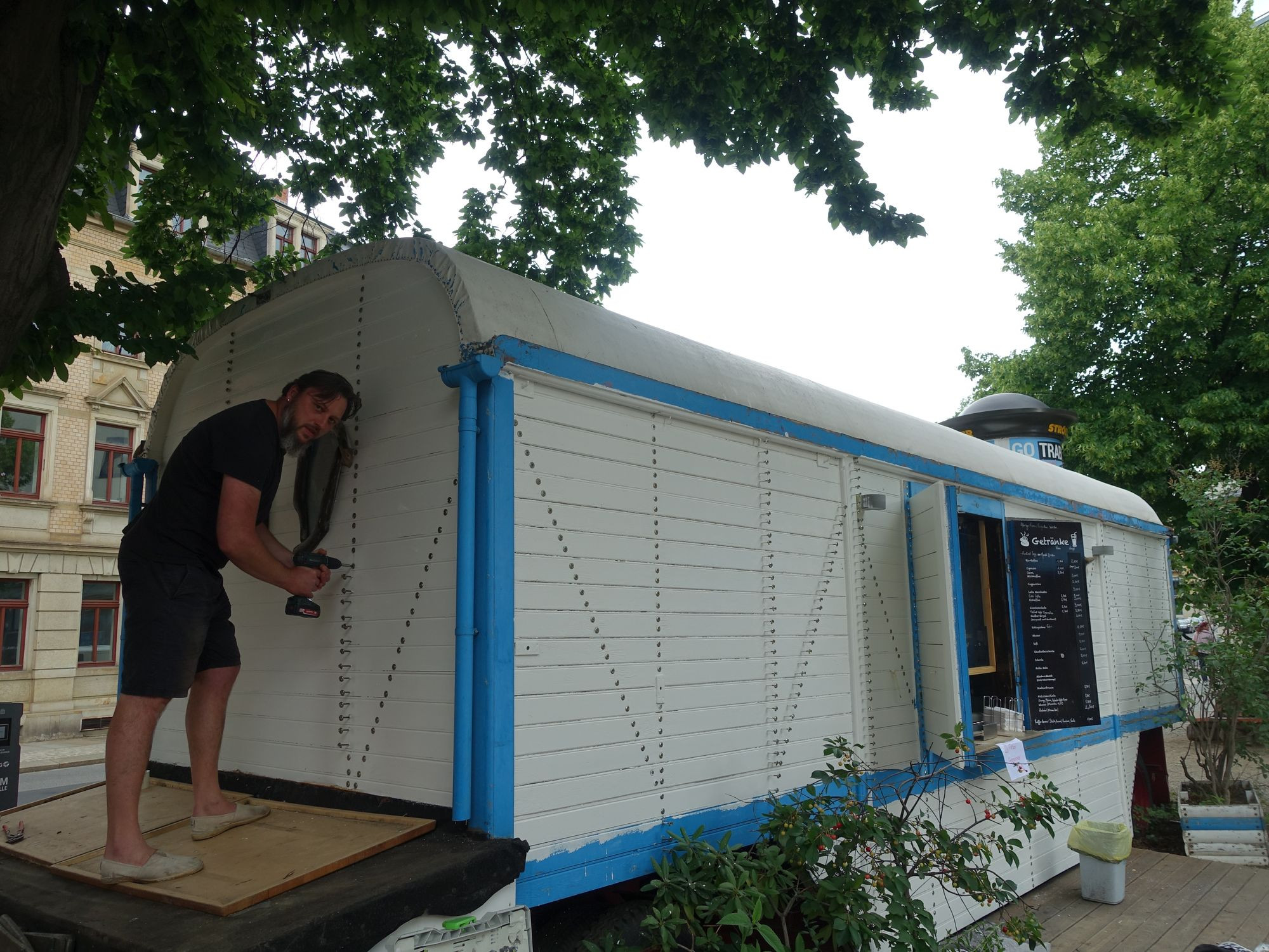 Der Platz am Elbcenter bekam den ersten Mobipunkt in Pieschen und der Eiswagen neue Farbe. Dafür drehten die fleißigen Helfer rund 1.300 Schrauben an der ehemaligen Schießbude los, um ans Holz zu kommen. Eiswagen-Inhaber und Platz-Pächter Martin Petzold kümmert sich weiter um die Marktstände und hat den Brunnen zu neuem Leben erweckt. Das Team von Iwent.de schaut jetzt aus dem neuen Geschäft in der Mohnstraße 52 auf den frisch gestrichenen Eiswagen. Sie sind von der Rehefelder Straße hierher gezogen und freuen sich über deutlich mehr Laufkundschaft. Neben dem Service rings um PC und Netzwerke werden hier weitere Dienstleistungen angeboten: Webseiten erstellen und hosten oder Scannen und Drucken bis zu A1- und A2-Formaten sowie Faxen.