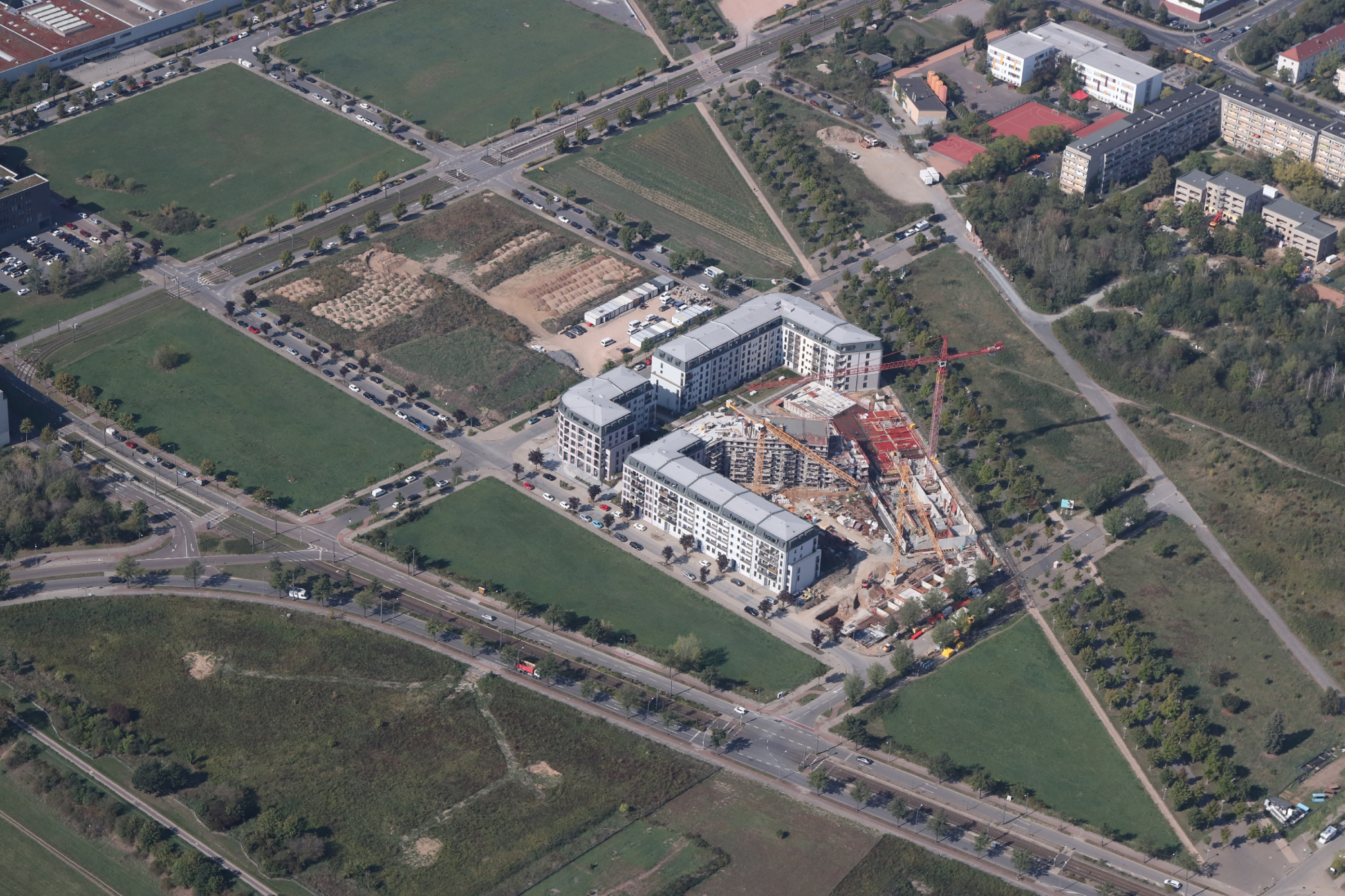 An der Kötzschenbroder Straße entwickelt das Dresdner Unternehmen Gamma Immobilien ein 1,5 Hektar großes Areal zwischen Herbststraße und Franz-Lehmann-Straße zu einem Wohngebiet mit voraussichtlich 16 Neubauten. Die ersten der 30 Wohnungen in den drei Mehrfamilienhäuser entlang der Herbststraße sind bereits bezogen. An der Großenhainer Straße brennen hinter den Fenstern des ersten Mehrfamilien-Holzpalais‘ bereits die Lichter.