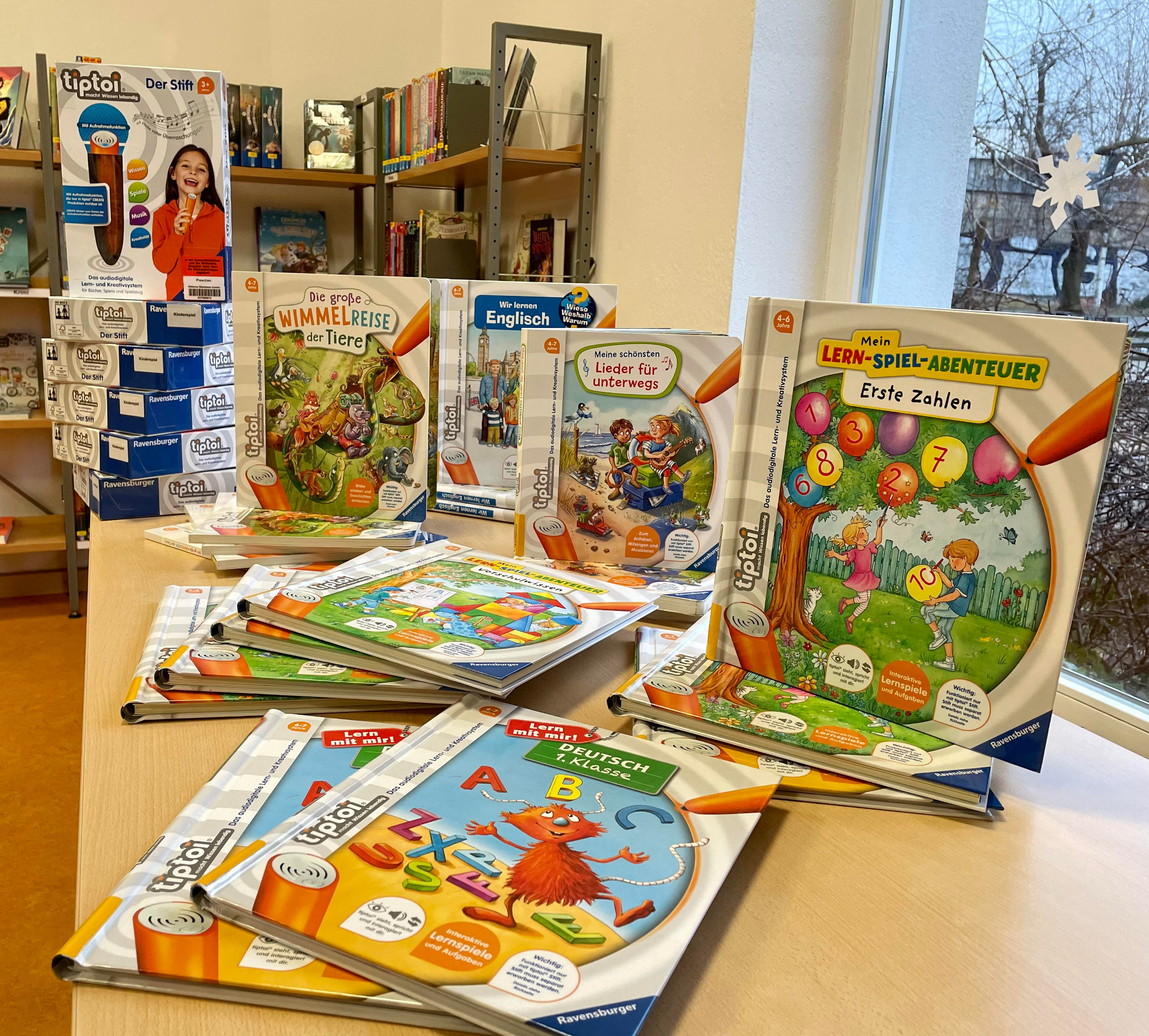 „Seit vielen Jahren sind die Multimediabücher aus dem Hause Ravensburger ein Ausleihrenner. Mithilfe des Tiptoi-Stiftes können sich Kinder das Buch nicht nur anschauen oder lesen, sondern interaktiv agieren. Auch Spiele erreichen damit ein neues Spaßlevel. Der Stift liest vor, macht Geräusche, singt und spielt Lieder. Mit den neueren Versionen kann man sogar Töne aufnehmen“, erläutert Paula Latta, warum die Tiptoi-Angebote so begehrt sind. Entwickelt wurden sie für die Altersgruppe von 3 bis 10 Jahren.