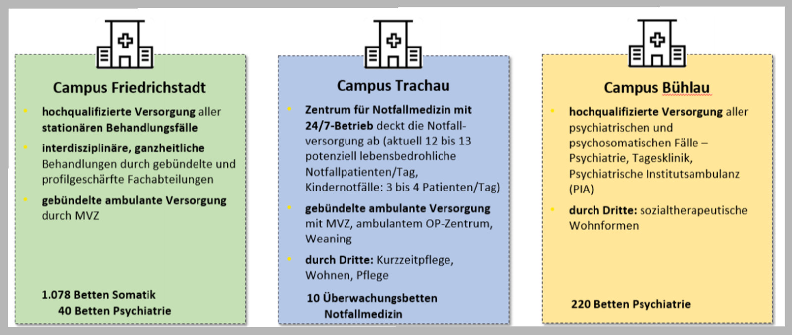 Die Campus-Profile in der Neuausrichtung des Städtischen Klinikums. Quelle: dresden.de
