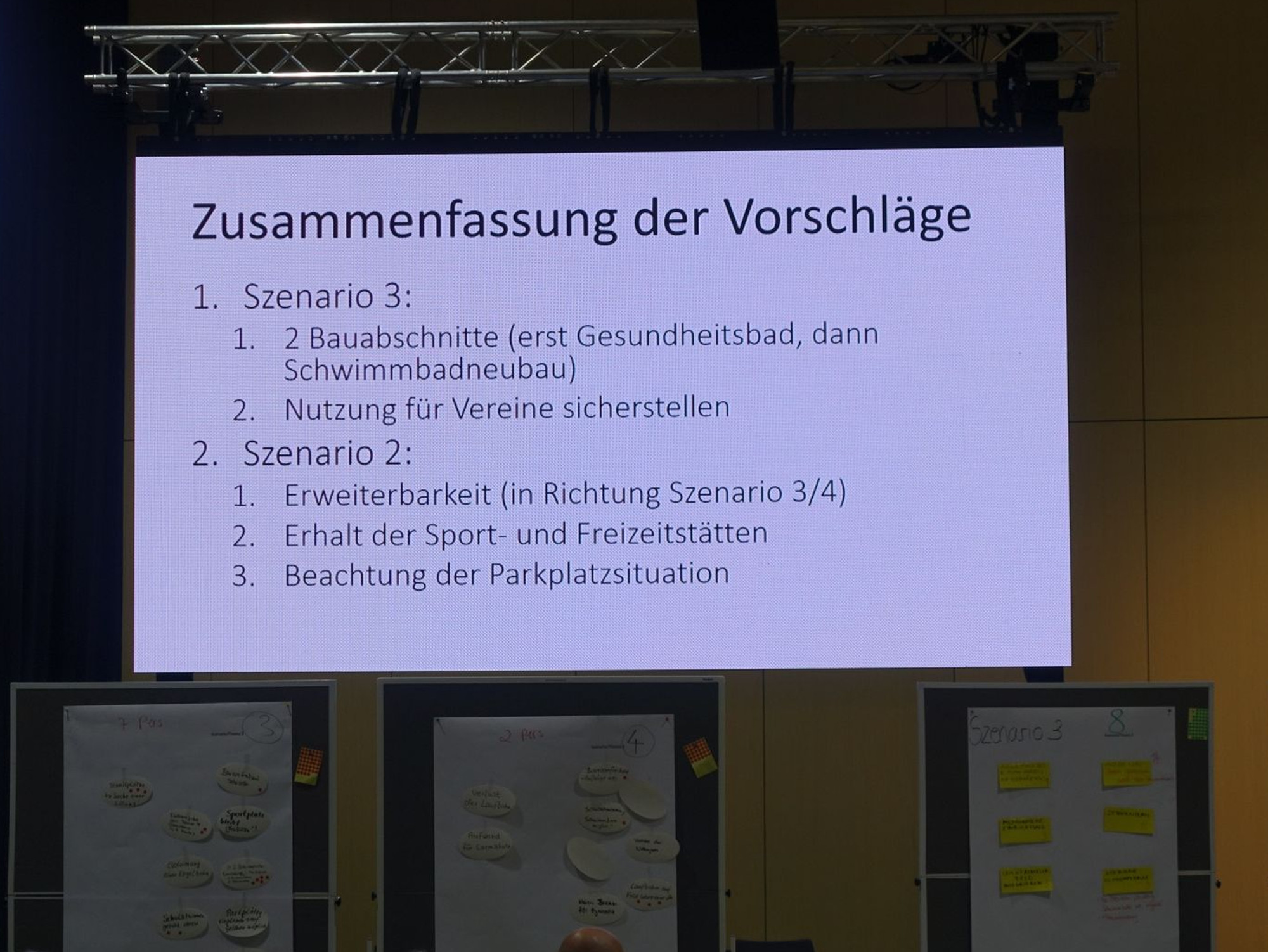 Andreas Tietze, der mit seinem Team von der Aktion Zivilcourage e.V. für die Moderation der Diskussionen sorgte, konstatierte dann nach 90 Minuten Debatte in den drei Runden, dass das Fazit sehr ähnlich sei. Weil das Schwimmangebot für alle enorm hoch bewertet wird, lief es letztlich auf das Szenario 3 hinaus: Sanierung des Sachsenbades als Gesundheitsbad. Dafür hatte die Bürgerinitiative ein umfassendes Konzept erarbeitet. Und der Neubau einer Schwimmhalle so schnell wie möglich.