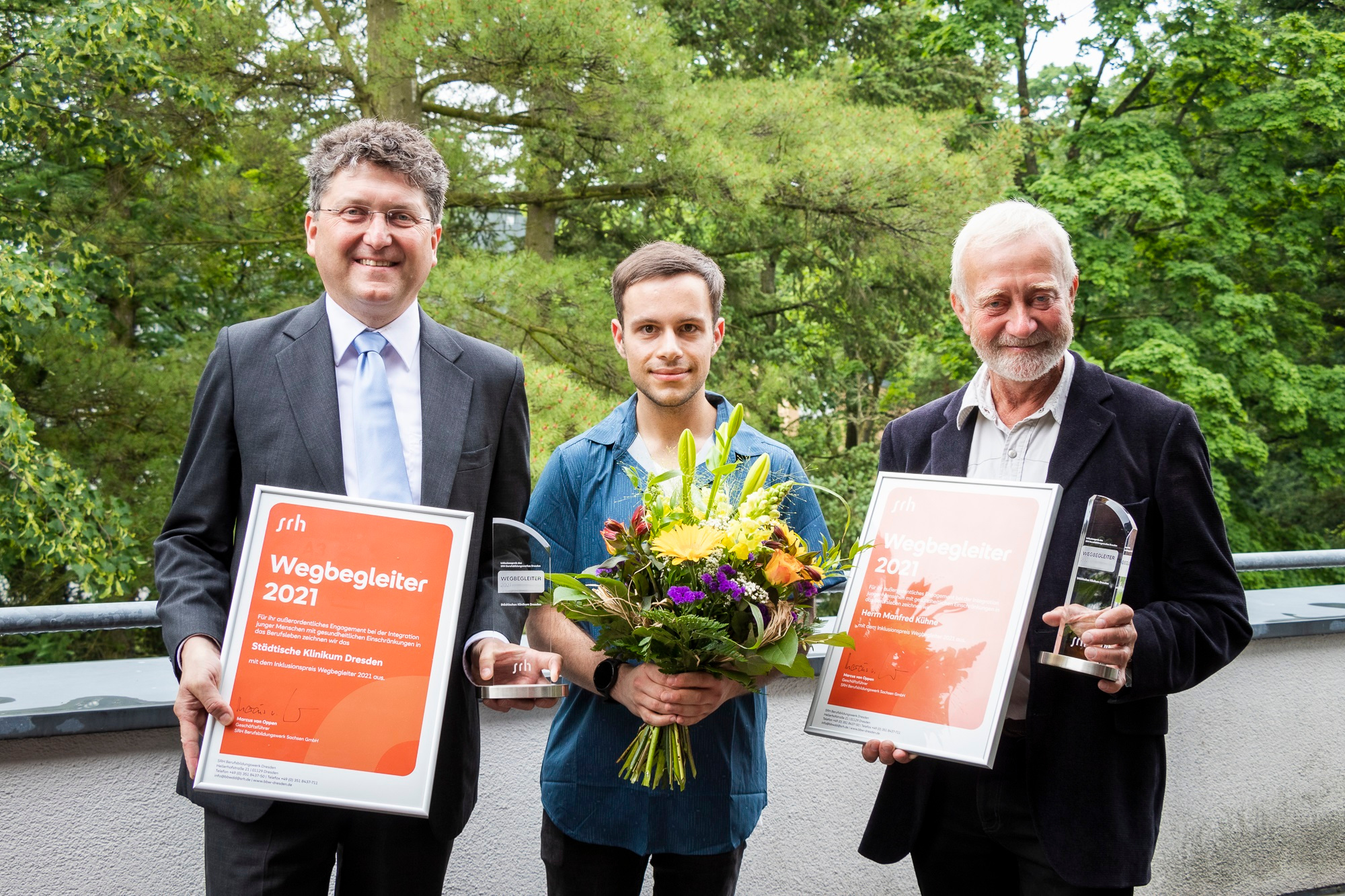 Das Städtische Klinikum Dresden wird in diesem Jahr mit dem Inklusionspreis „Wegbegleiter“ ausgezeichnet. Mit dem Preis würdigt das SRH Berufsbildungswerk Dresden jährlich das herausragende Engagement seiner Partnerunternehmen bei der Inklusion junger Menschen. Manfred Kühne, Fachbereichsleiter in der IT-Abteilung im Städtischen Klinikum Dresden, hat sich dabei in besonderer Weise engagiert. Bis zu seinem Ruhestand begleitete er Auszubildende auf ihrem Weg in ein selbstbestimmtes Berufsleben. Einer dieser Auszubildenden ist Christoph Mattetschk, der nun das IT-Team verstärkt und sich als Nachfolger von Manfred Kühne für Auszubildende mit Handicap stark macht.