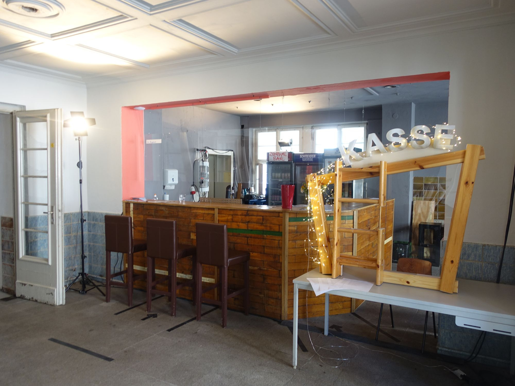 Nikolaus Woernle erinnert sich noch gut an die Anfänge. 2013 residierte in dem Gebäude ein alter Herr mit seinem Eurobasar. Jede Ecke war zugestellt mit Möbeln. Viel Gerümpel war nach dessen Auszug einfach liegen geblieben. „Es war ein langsamer Übergang“, sagt der Musiker, der zum Vorstand des Zentralwerk e.V. gehört. „2014 und 2015 haben wir den Saal und den riesigen Keller darunter entrümpelt. Die Toiletten waren verwüstet und verdienten den Namen nicht“, sagt er. Das Dach war marode und musste repariert werden. Loses Parkett, Fliesen und alte Wände wurden entfernt.