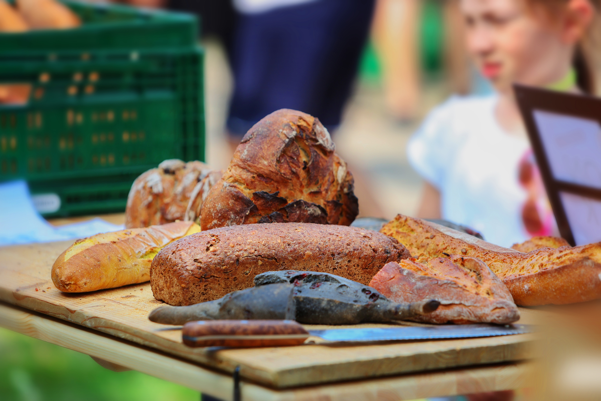 Auf dem heutigen Markt haben die Lebensmittel durchschnittlich 21 km zurückgelegt, schätzt Fanny. Vertreten ist alles, was sich die verschiedensten kulinarischen Herzen wünschen könnten- Gemüse, Obst, Brot, Milchprodukte. Von vielem kann sogar probiert werden – begeistert nasche ich von Dillkäse, Wildknacker, schwarzem Cranberry-Baguette und Erdbeer-Fruchtleder. Ab nächster Woche gibt es sogar noch mehr Auswahl – zum Beispiel regionales Lein-, Sonnenblumen- und Rapsöl sowie Bio-Kartoffeln. Momentan fehlt nur Fisch – er wird ab September wieder zum Verkauf stehen. wenn die Sommerwärme vorüber ist. Manche Erzeugerinnen und Erzeuger kooperieren sogar – so finden zum Beispiel Milch und Quark des einen Anwendung in den Broten eines anderen.
