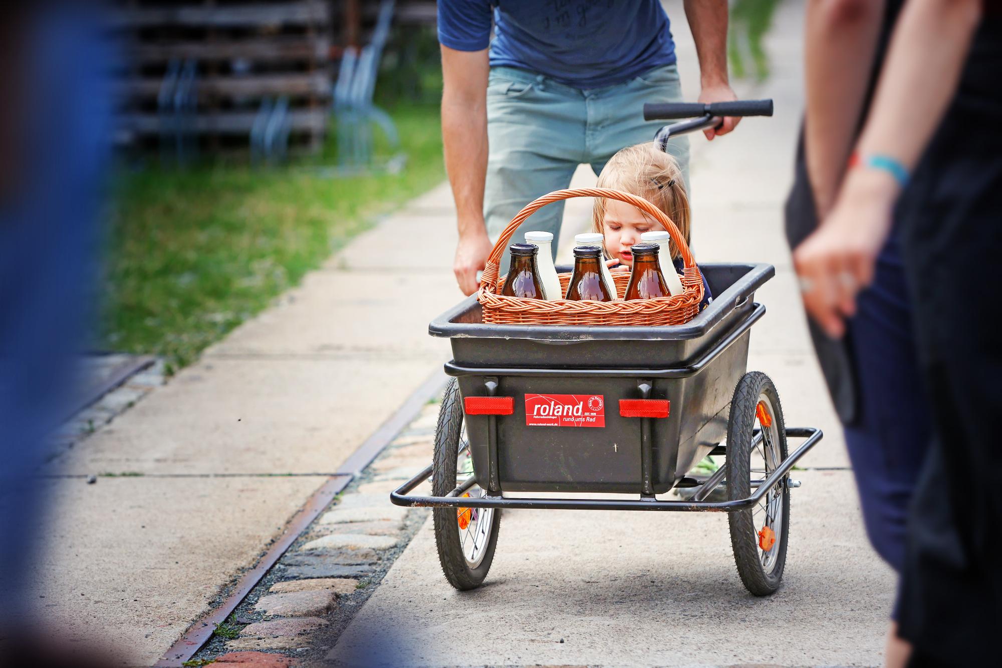 Trotz gleichzeitiger Zeugnisausgabe an den Schulen wird die Schwärmerei in Pieschen gut angenommen, Fanny erzählt, rund 80 Bestellungen seien im Voraus eingegangen. Im Gespräch mit den Menschen vor Ort bestätigt sich dies. Viele waren schon bei Schwärmereien in anderen Stadtteilen, einige sind auch über Flyer in ihren Briefkästen neu auf die Veranstaltung gestoßen. Man freut sich über die geringe Distanz und das schöne Ambiente auf dem Areal des Geh8-Vereins. Die Stimmung ist entspannt, Grüppchen unterhalten sich, ein Kind lässt sich gemeinsam mit dem Wocheneinkauf in einem Karren durch das Gewusel kutschieren.