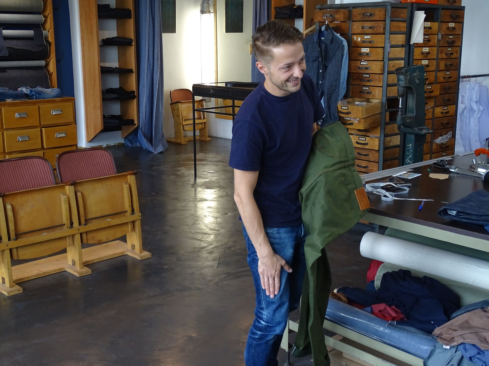 mit der Zeit als Durchdruck auf der Außenseite erkennbar. Das veranschaulicht einen Grundsatz Johanns: Seine Jeans sollen nicht nur aus hochwertigem Material fachkundig hergestellt sein und gut passen, sondern sich mit der Zeit entwickeln. Auch Sonderwünsche werden mit spielerischer Leichtigkeit integriert: So erzählt Johann, dass einige Jeansmodelle für den Abnehmer in Shanghai in Anlehnung an die Nationalfarben Chinas extra eine rote Naht erhielten. Seine Stoffe bezieht Johann alle aus Japan.