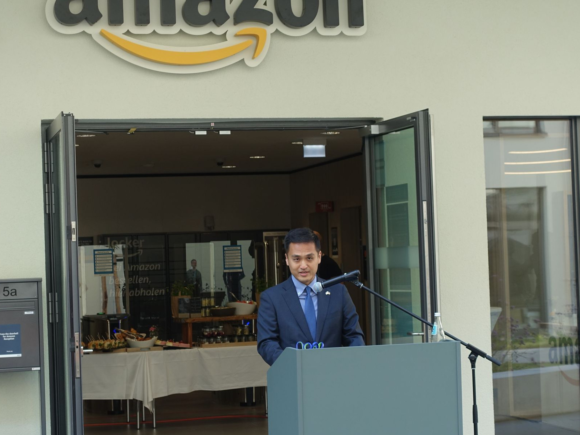 Generalkonsul Ken Toko verwies auf die Reserven in der deutsch-amerikanischen Zusammenarbeit. „Die Unternehmen in den USA wissen wenig über das Potenzial der Wirtschaft, Wissenschaft und Forschung in Sachsen. Das möchten wir ändern“, sagte er. Gemeinsam durchschnitt er dann mit Schlaeger und Kretschmer das symbolische Band vor dem Eingang in den Amazon-Standort, der den gesamten hinteren Teil des Bürokomplexes einnimmt.