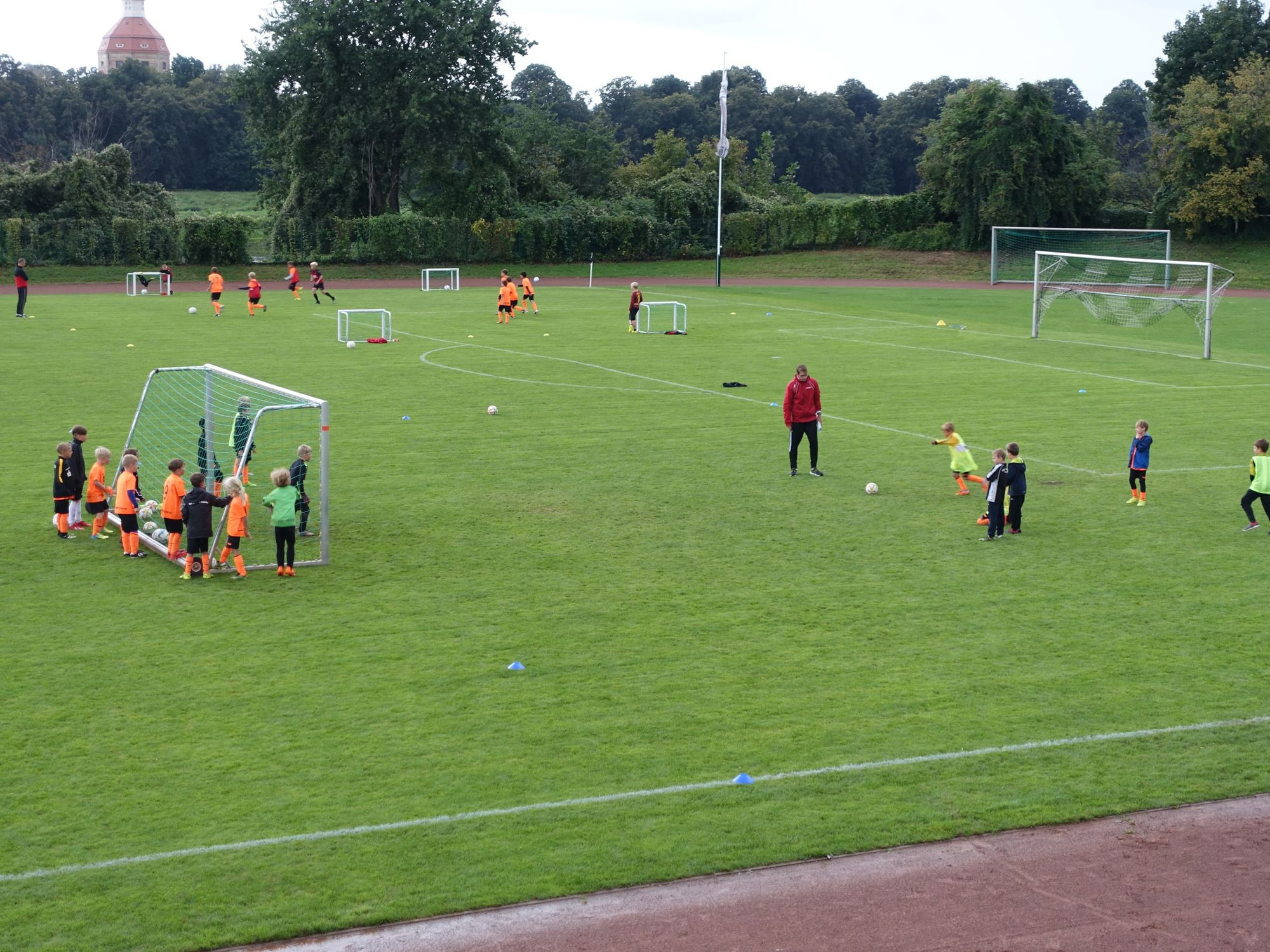Der Regen hat die 47 Fußballjungen vom TSV Rotation Dresden nicht abgeschreckt. Fünf Tage lang haben sie auf dem Platz an der Eisenberger Straße trainiert. Sven Villain, Nachwuchsleiter und Trainer im Verein, ist begeistert vom Engagement seiner jungen Spieler. „Im vergangenen Jahr ist das Fußballcamp an Corona gescheitert“, sagt er und ist stolz darauf, dass sich bei der Premiere so viele angemeldet haben. Das Angebot richtete sich an die 7- bis 11-Jährigen, die alle noch auf dem Kleinfeld spielen. „Da haben wir im Verein etwa einhundert Spieler in den verschiedenen Altersklassen“, meinte er.