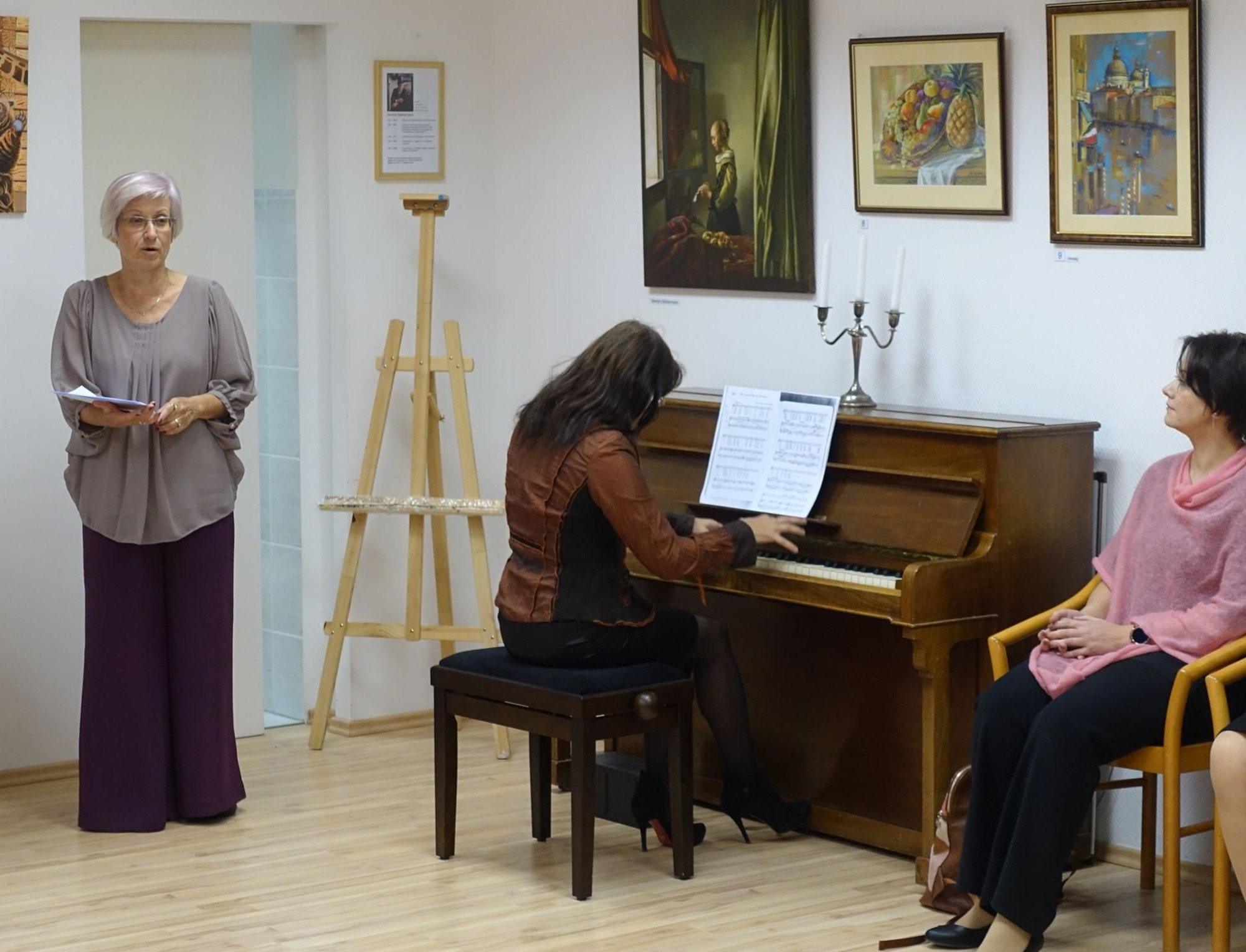 Die Noten am Klavier hatte Elena Rubinova schon vor der Veranstaltung dort platziert. Die Konzertmeisterin aus St. Petersburg arbeitet derzeit als Honorardozentin an der Hochschule für Musik in Dresden. Sie begleitete die Anna Piontkovsky. Viele werden die bulgarische Sopranistin von ihrer Arbeit an der Dresdner Staatsoperette und ihren Konzerten kennen.