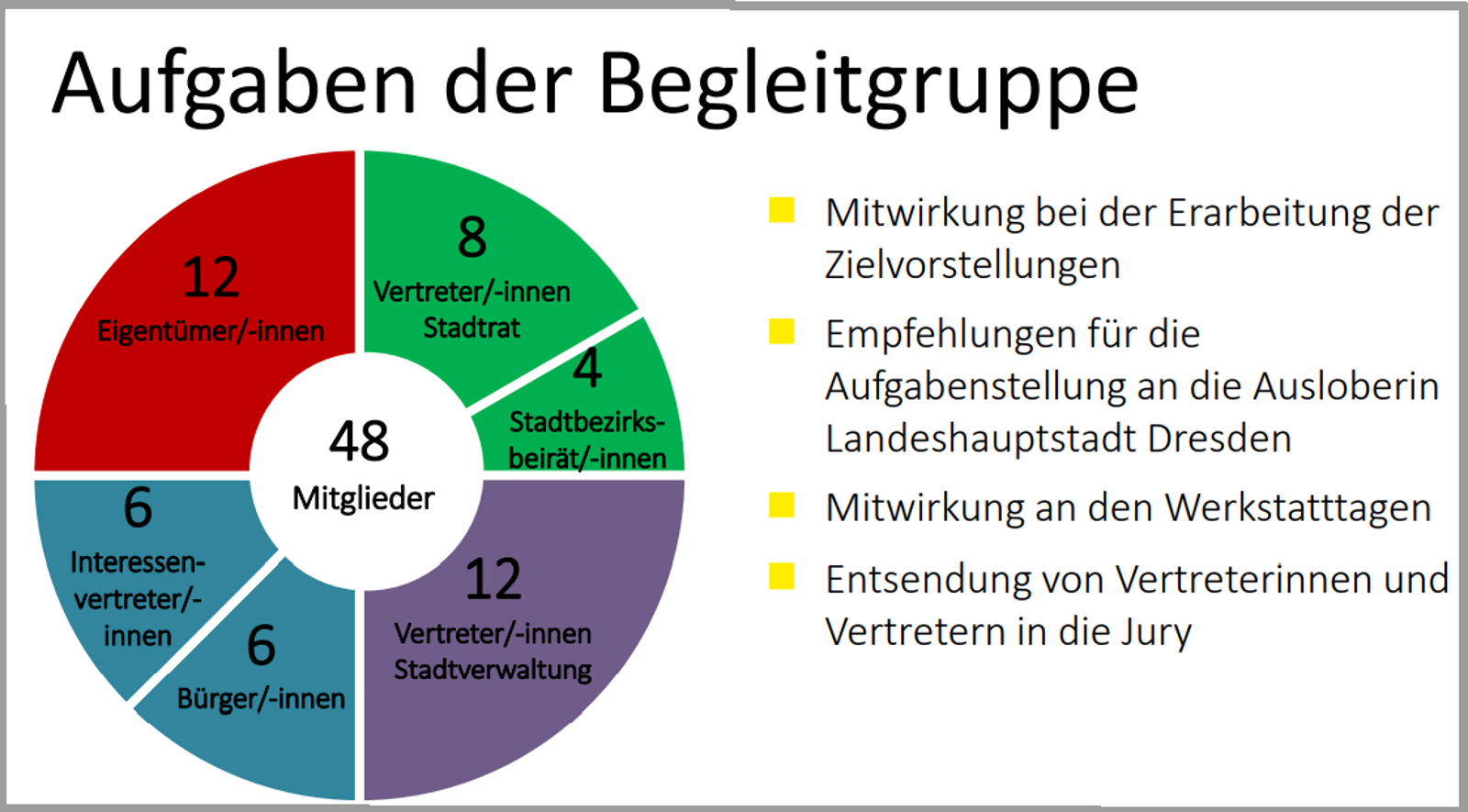 Zusammensetzung und Aufgaben der Begleitgruppe. Quelle: dresden.de