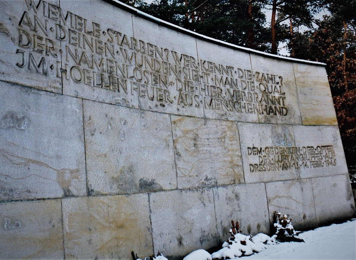 Der Heidefriedhof ist zugleich aber auch Erinnerungsort für die Opfer der faschistischen Terrorherrschaft und des Zweiten Weltkrieges. Mehrere Gedenkstätten und Ehrenhaine sind hier angelegt. So wurde nach dem Bombeninferno vom Februar 1945 der vom NS- Regime schon 1937 geplante Hain für die Gefallenen des Ersten Weltkrieges zum Massengrab Tausender Dresdner sowie durchreisender Flüchtlinge. Eine 1963 errichtete Sandsteinmauer im Gedenken an die Opfer des Luftangriffs auf Dresden am 13./14. Februar 1945 bildet den Abschluss des Massengrabes.
