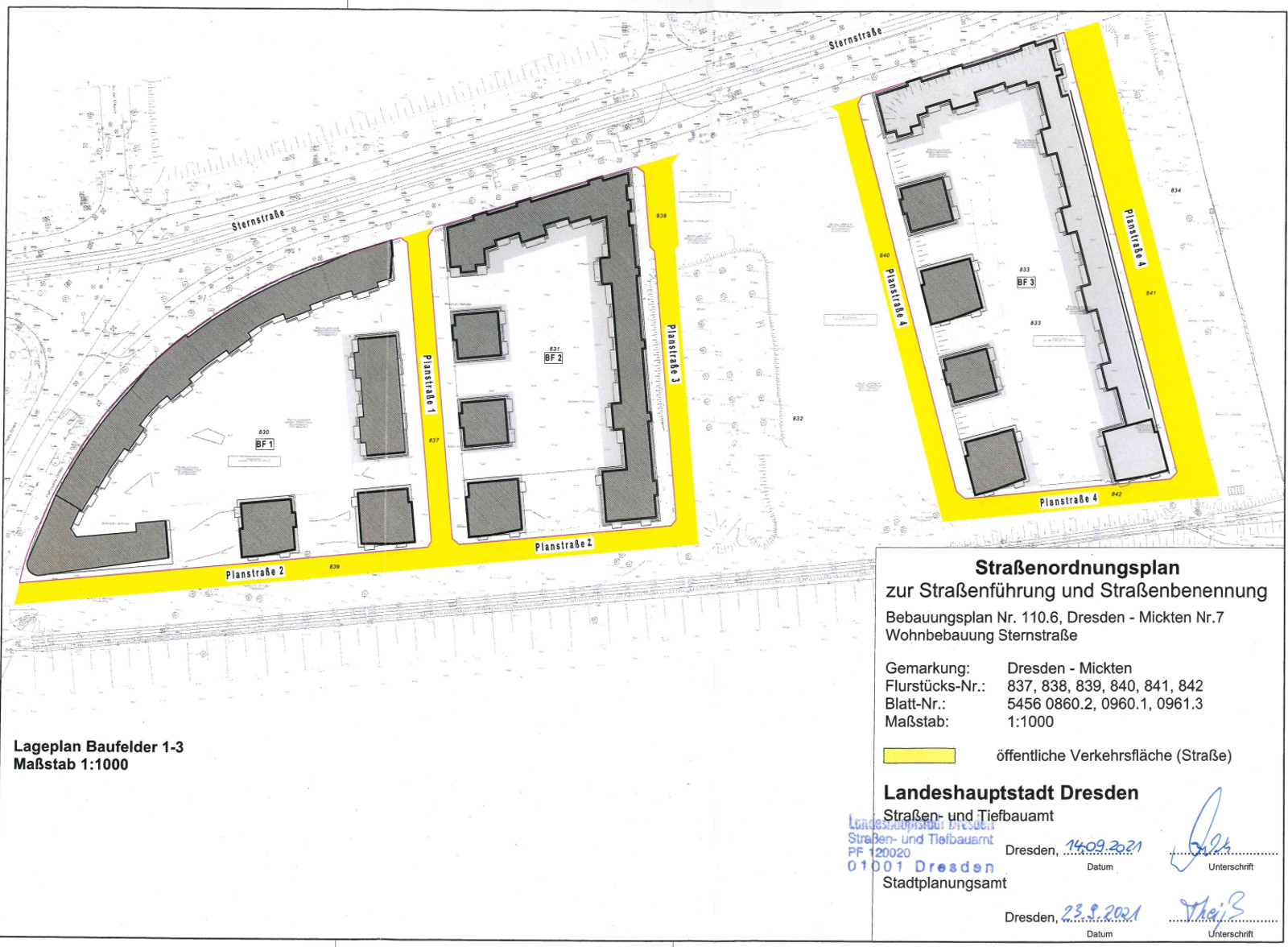 In der Sternstraße in Mickten sollen bis Ende 2025 etwa 533 neue Wohnungen entstehen. Das Projekt hat den Namen Elbbogen Dresden. Bauherr ist die Sternstraße Dresden Grundstücks GmbH mit Sitz in Gera. Im ersten Bauabschnitt entstehen 65 Drei-Zimmer-Wohnungen und 66 Vier-Zimmer-Wohnungen. Auf dem rund 25.000 Quadratmeter großen Grundstück sind vier sogenannte Planstraßen verzeichnet.