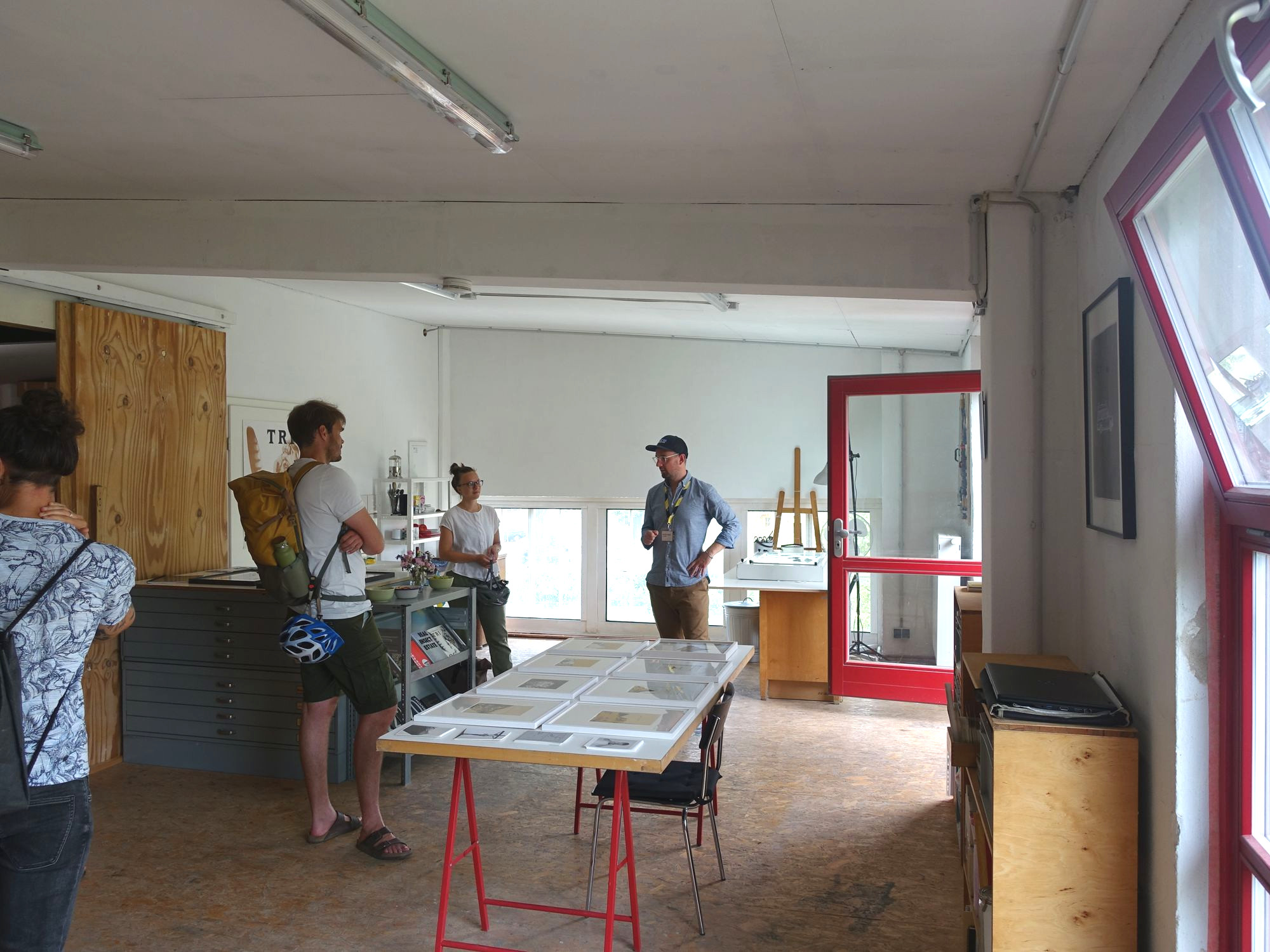 Open Studios in der Geh8: Für die Gäste aus Tschechien gibt es die Führung von Paul Elsner auf englisch. Foto: W. Schenk