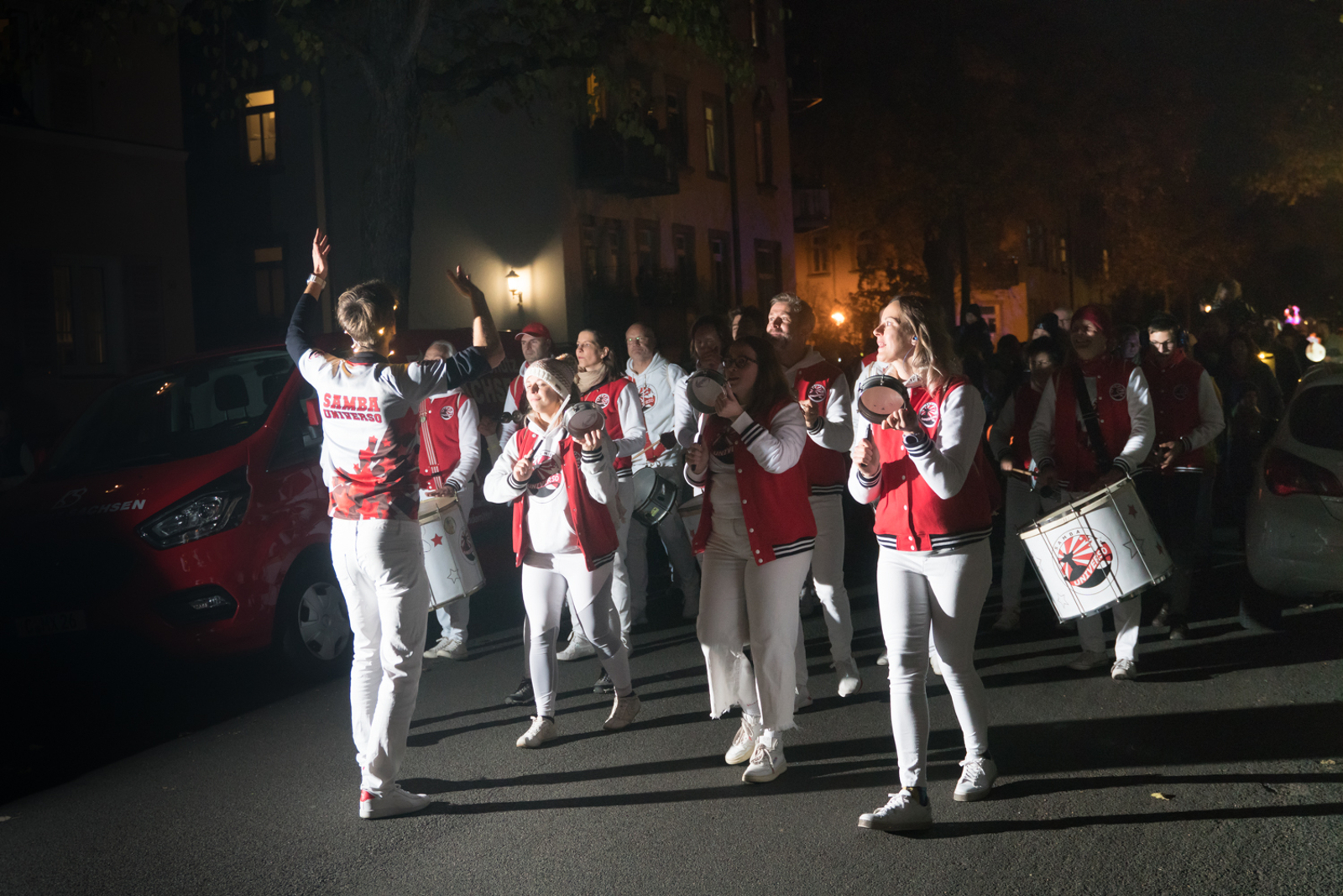 Punkt 18 Uhr setzte sich dann der Umzug zu mitreißenden Sambaklängen durch das Wohngebiet „Wilder Mann“ in Bewegung. Unter den rund 800 Teilnehmenden des Laternenumzuges ließen sich wunderschöne und liebevoll gestaltete Laternen bewundern. Nur das Leuchten in den Augen der Kinder übertraf dieses Lichtermeer.