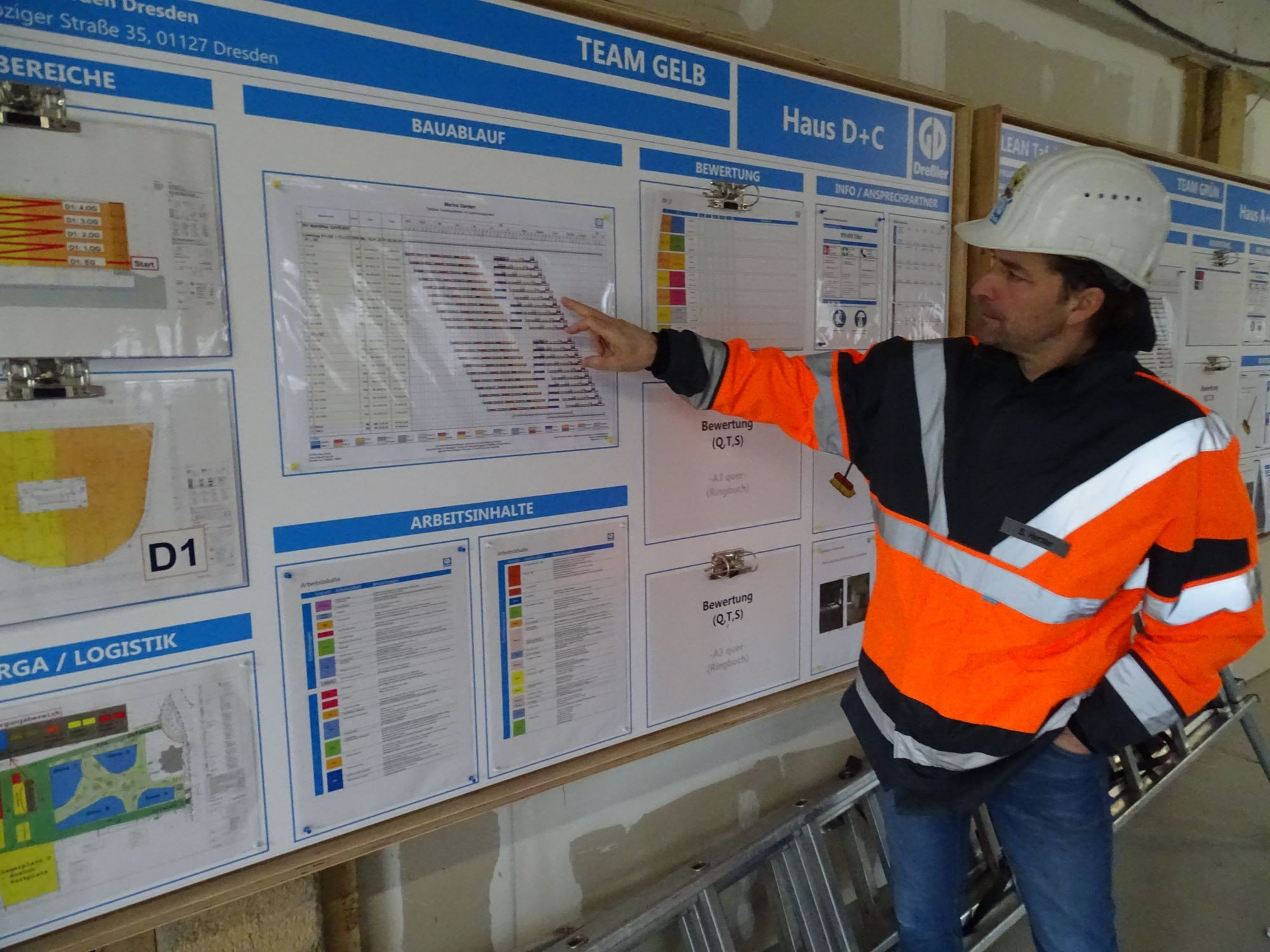 Auch die Farbgestaltung wurde mehrfach getestet, bis man geeignete Farbtöne gefunden hat, die die Sonneneinstrahlung nicht verstärken. „Technik schlägt Optik“, brachte Albl das Ergebnis auf einen kurzen Nenner. Er ist voll des Lobes über die Kooperation mit seinem Generalauftragnehmer Dreßler Bau. Oberbauleiter Steffen Herzer gibt die Komplimente gern zurück. Die enorme Preissteigerung infolge des Ukrainekrieges haben beide Seiten vor große Herausforderungen gestellt, meinte er. Beton, Holz, Stahl – plötzlich hatten sich die Preise verdoppelt. „Da mussten beide Partner Zugeständnisse machen. Das hat sehr gut funktioniert“, sagte Herzer.