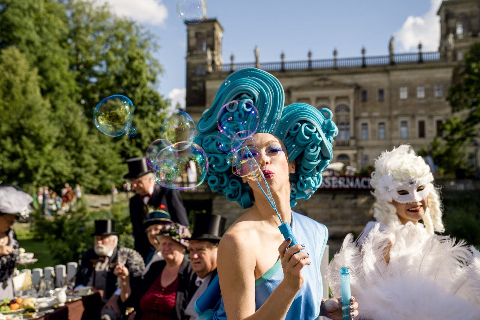 Schlendern und Schlemmen, Tanzen, Träumen und Genießen – dazu lädt die Open-Air-Kulturlandschaft in den Parkanlagen der drei Elbschlösser ein. Über sechs Kilometer erstrecken sich die beleuchteten Flanierwege. Kunst und Musik, bunt kostümierte Fabelwesen, romantisch beleuchtete Wege und Kulinarik von der Grillwurst bis zu feinen Snacks – all das und viel mehr erwartet dort die Gäste.