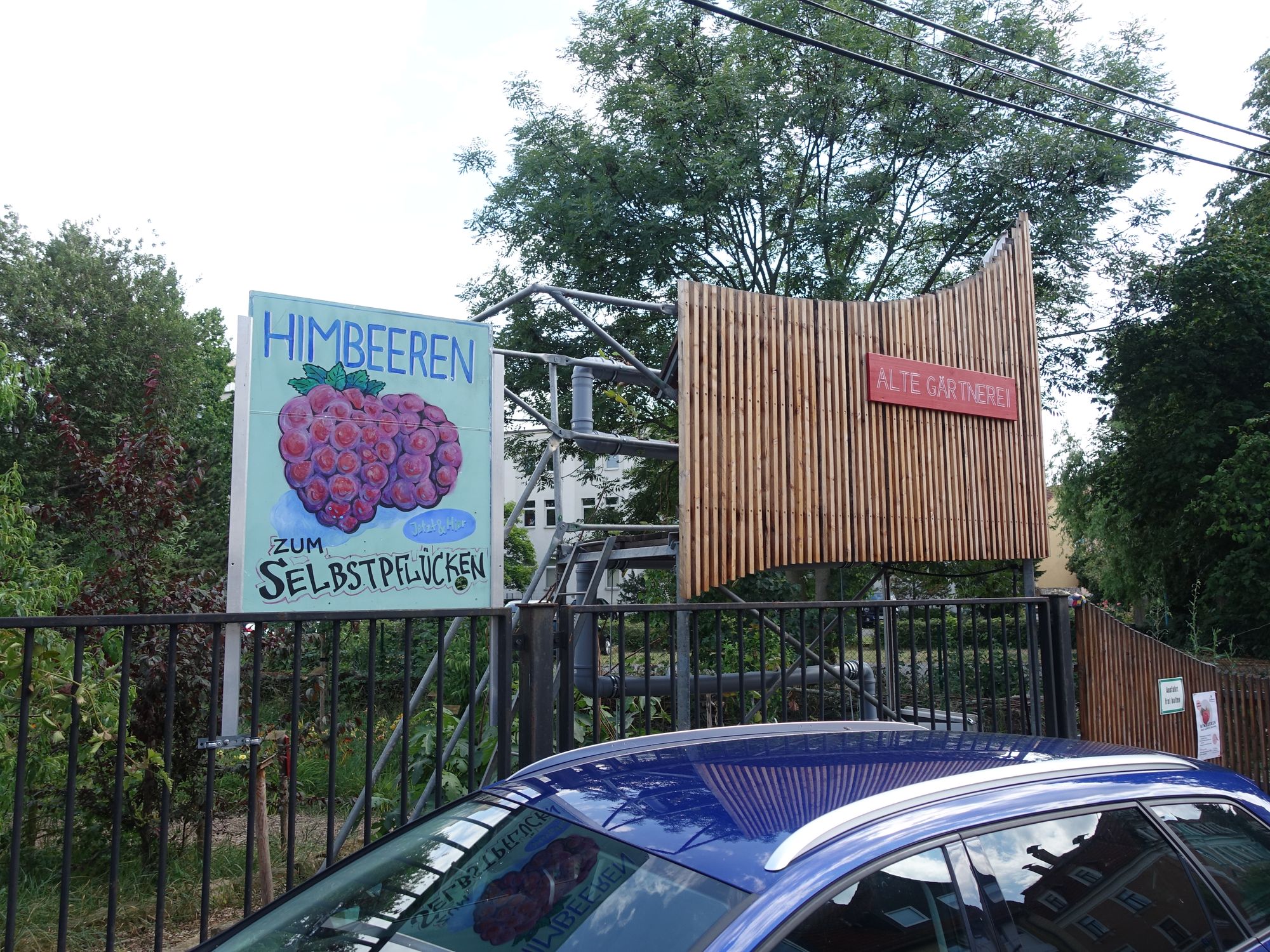 Genau dafür engagiert er sich in der Alten Gärtnerei. Hier wird mit ehrenamtlichen Helfern traditioneller Gartenbau unter Anleitung von Fachleuten betrieben. Das ist ein anderer Ansatz als nebenan im Gemeinschaftsgarten „Wurzelwerk“, wo die Akteure selbst ihre kleinen oder größeren Flächen bewirtschaften. Wer also mit Volker Croy durch die Gärtnerei streift, kann ihm zu jedem Beerenstrauch Fragen stellen und wird Antworten bekommen. Wo dieser herkommt, warum er so heißt, wie die Früchte schmecken und wo der besonders gut wächst. Die Selbstpflücker können sich an einer Tafel über die Lage der Pflanzen informieren. Allein von den Himbeeren sind hier mehr als fünf verschiedenen Sorten gepflanzt worden. Neben Croy engagieren sich noch zwei weitere gelernte Gärtner in der Alten Gärtnerei. Die Gärtnerei ist Teil der ufer-projekte und des Gartennetzwerkes Dresden.
