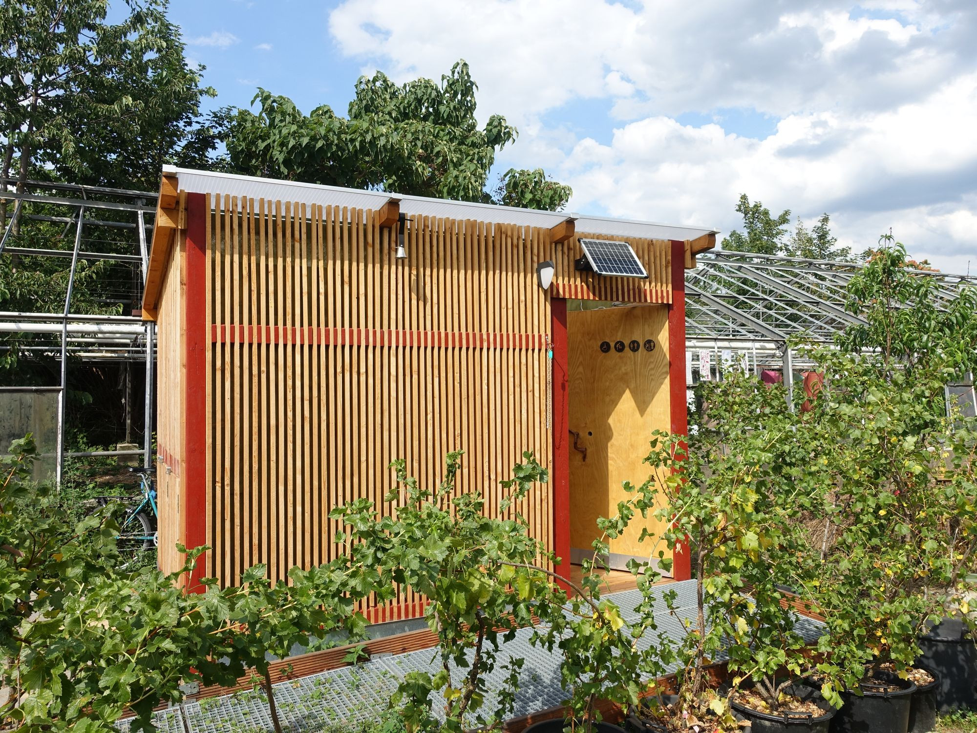 In den Erntepausen findet man in der Gemeinschaftsküche Koko ein schattiges Plätzchen. Sie ist in einem umgebauten Großcontainer untergebracht. Sonntags lädt in den warmen Monaten das Team vom gemeinnützigen Café Wilde Flora zu Kaffee und selbst gebackenem Kuchen. Eine alte Siebträger-Kaffeemaschine konnte dafür zu neuem Leben erweckt werden. Hier finden auch die regelmäßigen Workshops statt. An diesem Wochenende geht es um Wildbienen, eine Woche später um Wurmkompost. Zum Saisonabschluss im Oktober wurd gemeinsam Kim-Chi hergestellt.